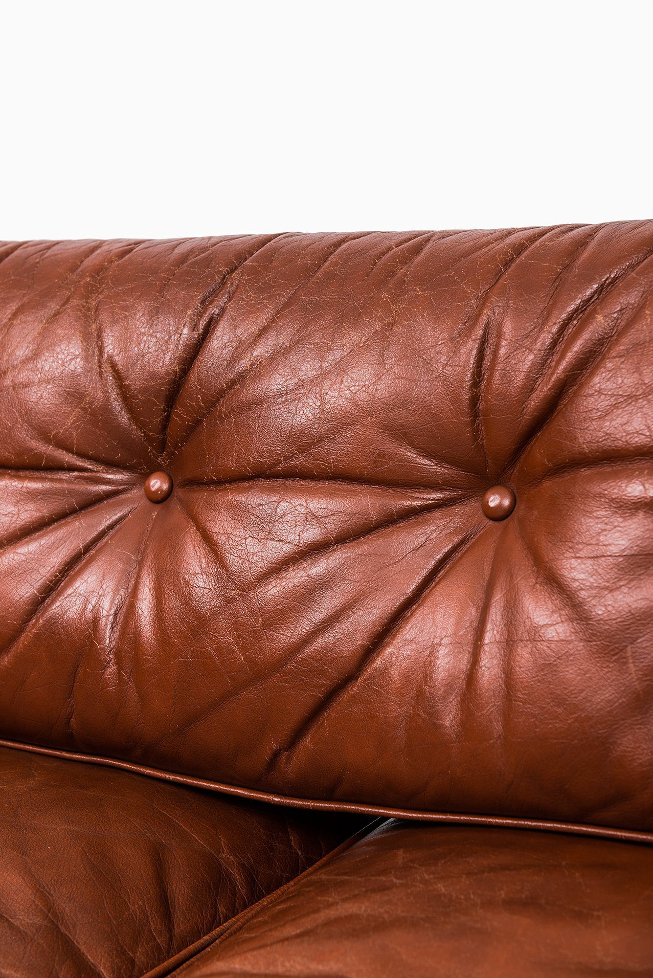The sofa measures 210 cm in width, 84 cm in depth, and 68 cm in height (82.7 x 33 x 26.8 inches), with a seat height of 38 cm (15 inches). It is presented in excellent vintage condition, with a consistent patina that highlights the quality of its materials. A matching two-seat sofa is also available, making it possible to assemble a complete lounge group.