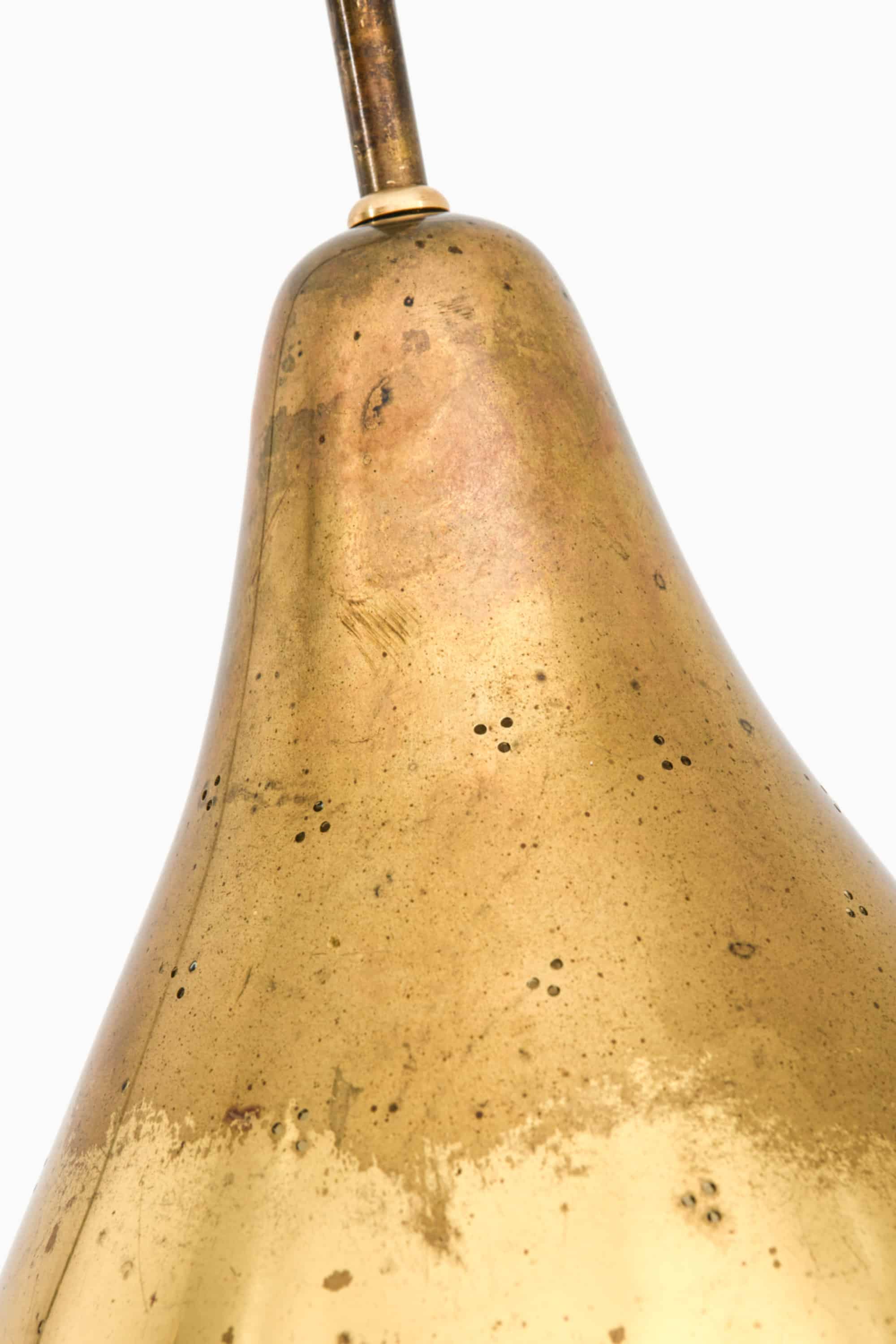 The style reflects Scandinavian mid-century design principles, with a focus on practicality, clarity of form, and materials that age gracefully. The brass construction gives the lamp both durability and a warm, atmospheric quality when lit, emphasized by the perforated shade.