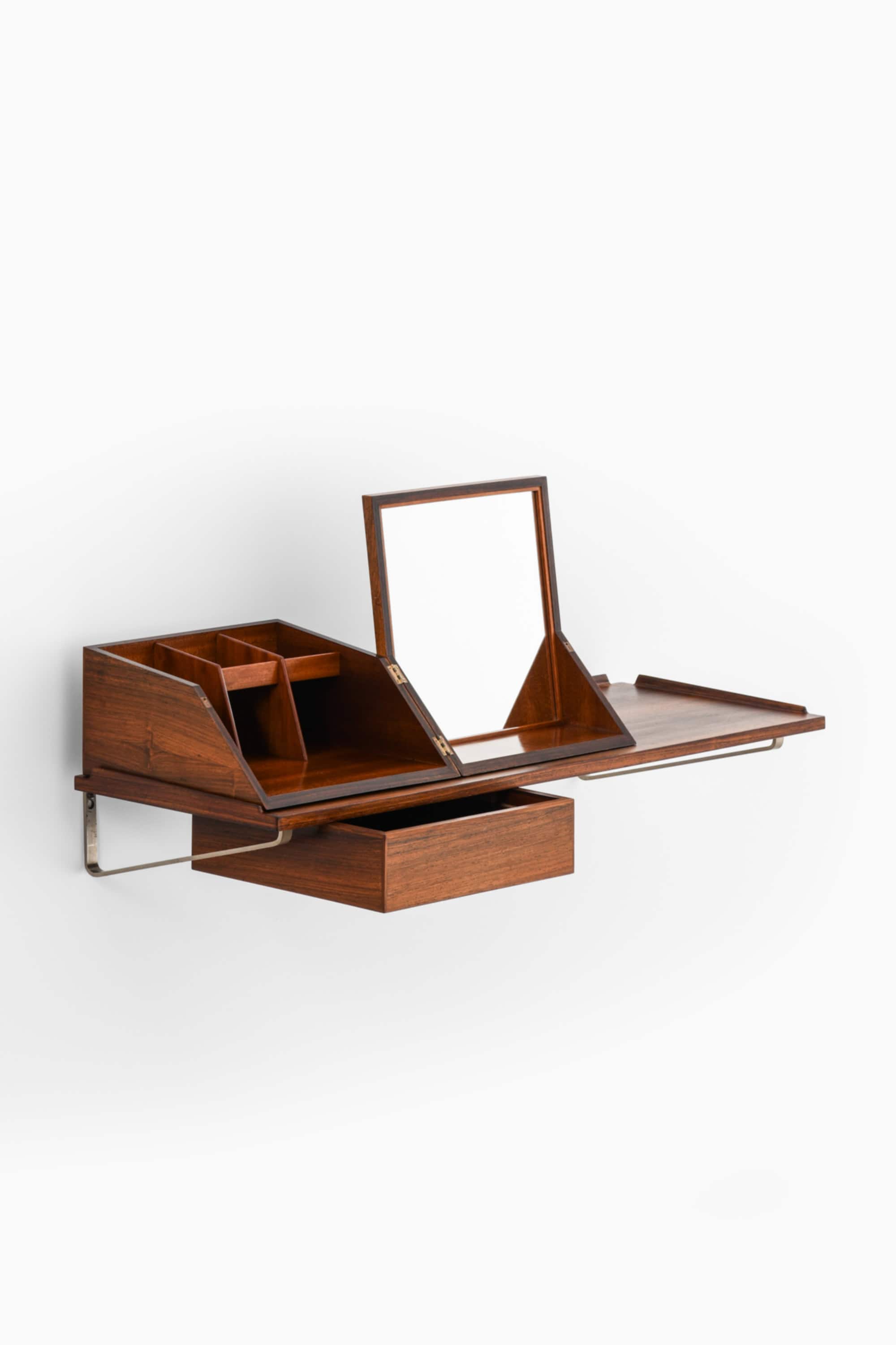 This table mirror exemplifies Danish mid-century modern design with its minimalistic yet sculptural aesthetic, focusing on form, natural materials, and functionality. Dimensions: 45 cm width, 32 cm depth, 48 cm height (17.7″ x 12.6″ x 18.9″).