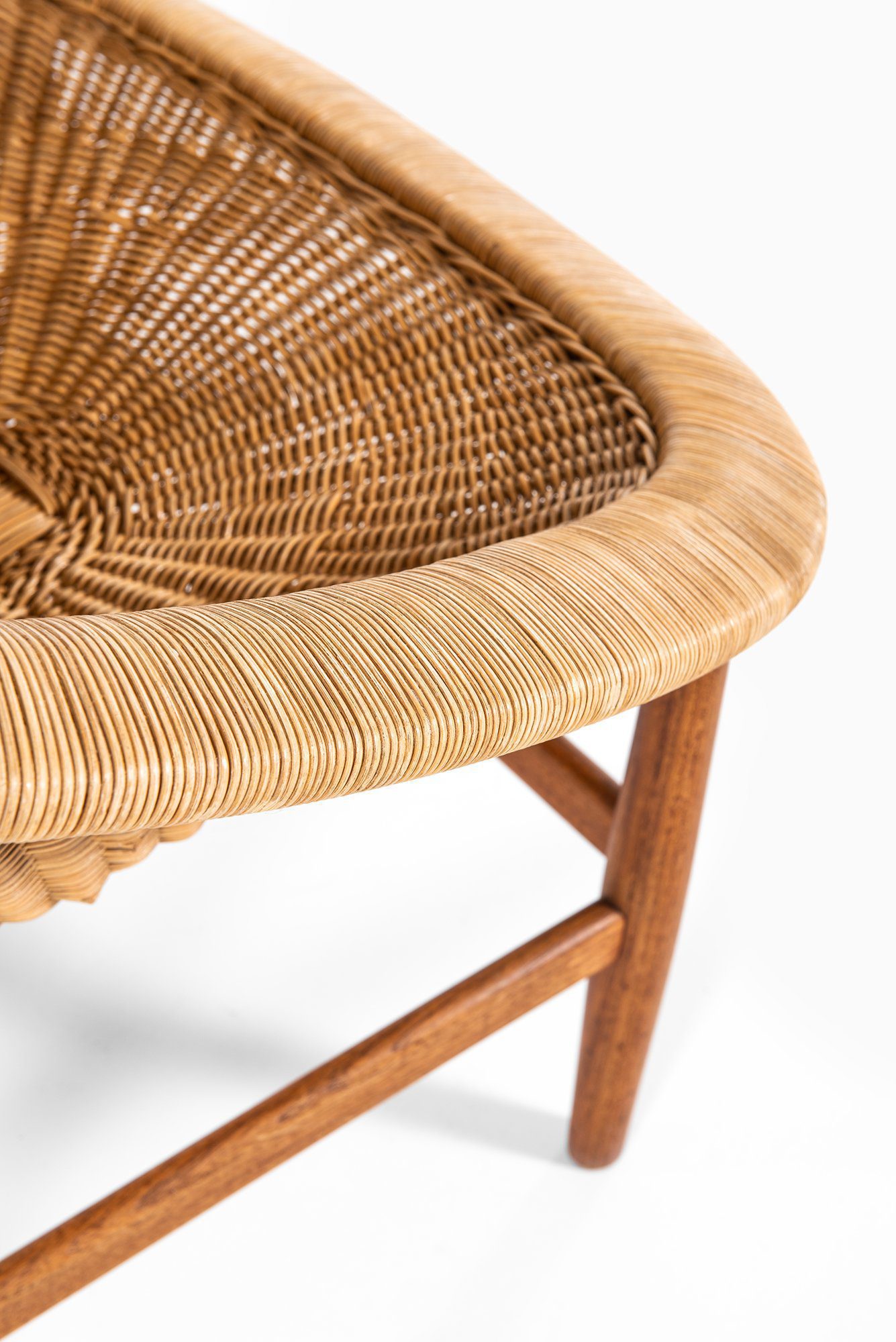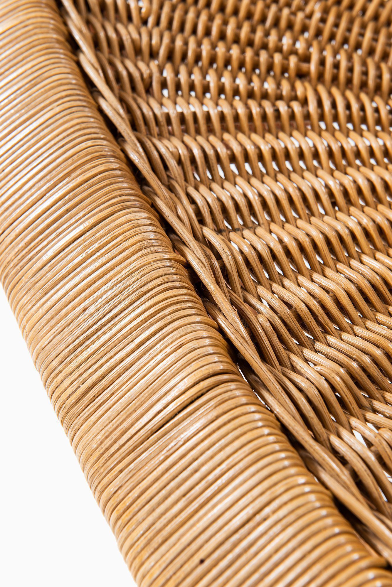 Nanna & Jørgen Ditzel were among Denmark’s most innovative postwar designers, known for exploring new materials and forms that blurred the boundaries between craft and industrial design. Their collaboration with master cabinetmaker Ludvig Pontoppidan and wickerwork specialist R. Wengler resulted in several pioneering furniture pieces, including these chairs, which stand as early examples of sculptural rattan furniture within Scandinavian design.