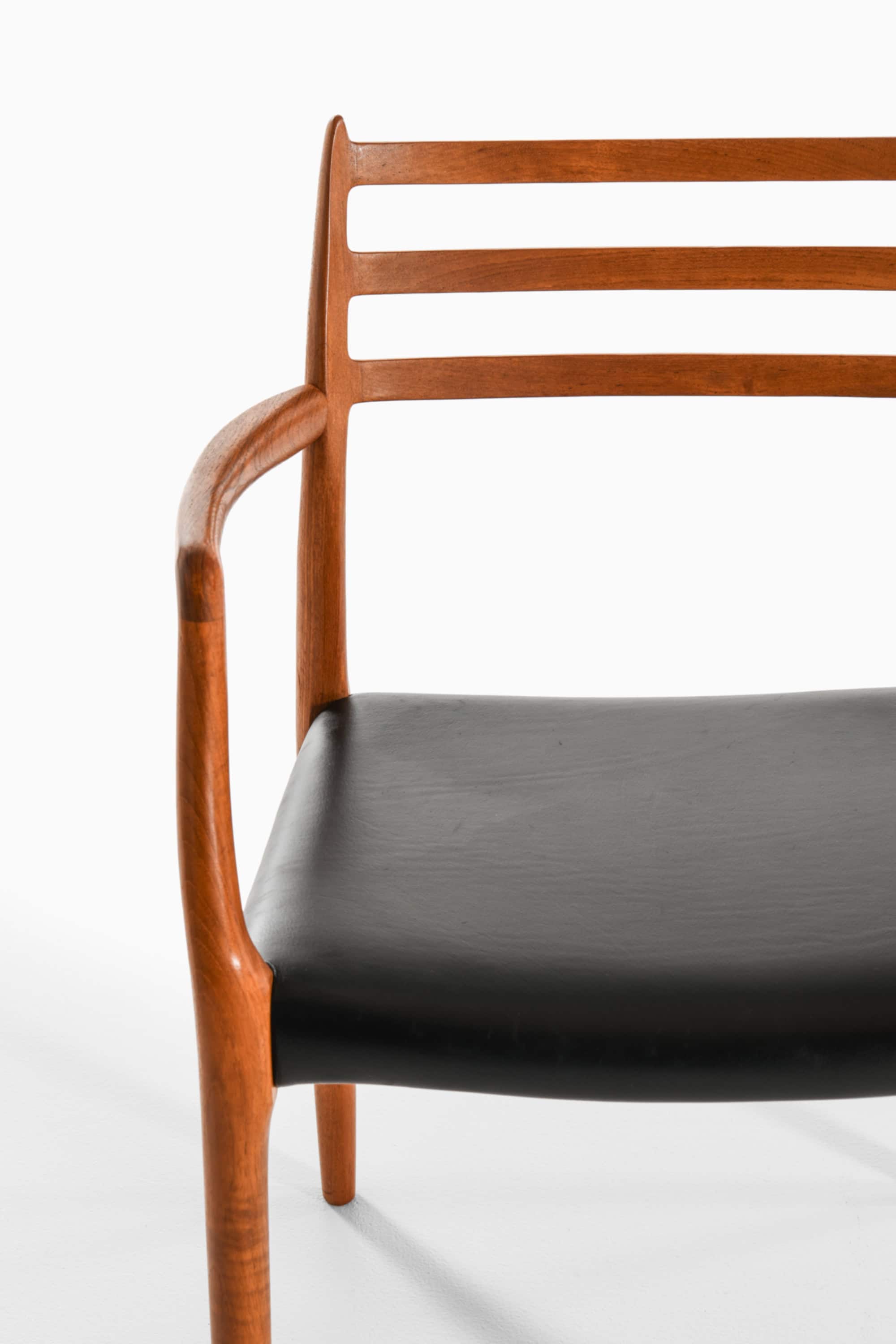 Niels O. Møller is known for designs that emphasize craftsmanship over industrial standardization, and model 62 is a distinct example of his work. The organic transitions between components and the avoidance of visible joinery reflect his pursuit of furniture that appears carved from a single continuous form. J.L. Møllers Møbelfabrik was one of Denmark’s most respected manufacturers, known for meticulous hand-finishing and for producing chairs that maintained structural integrity for decades.