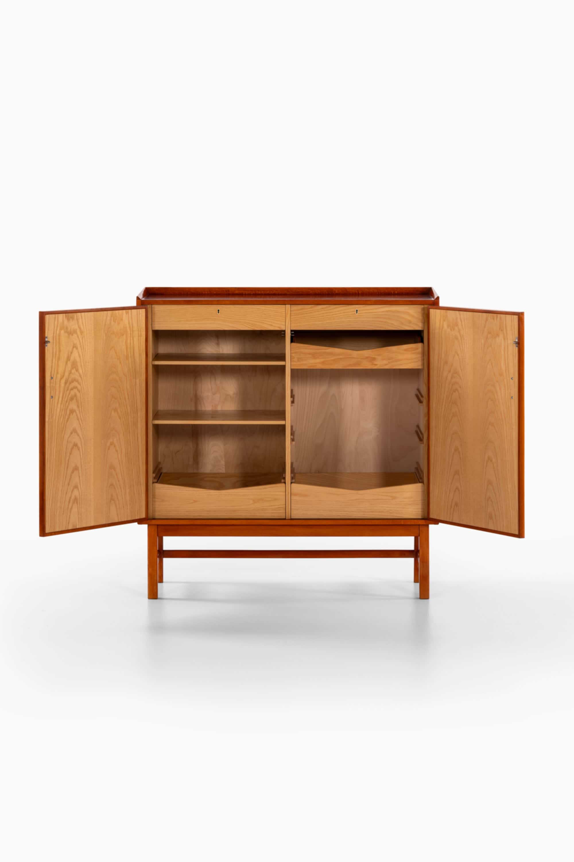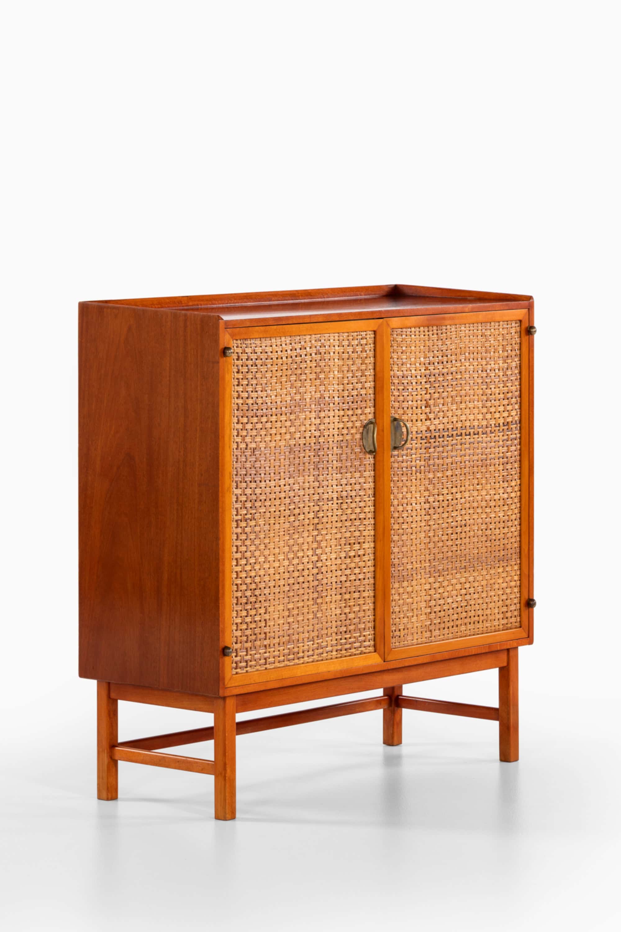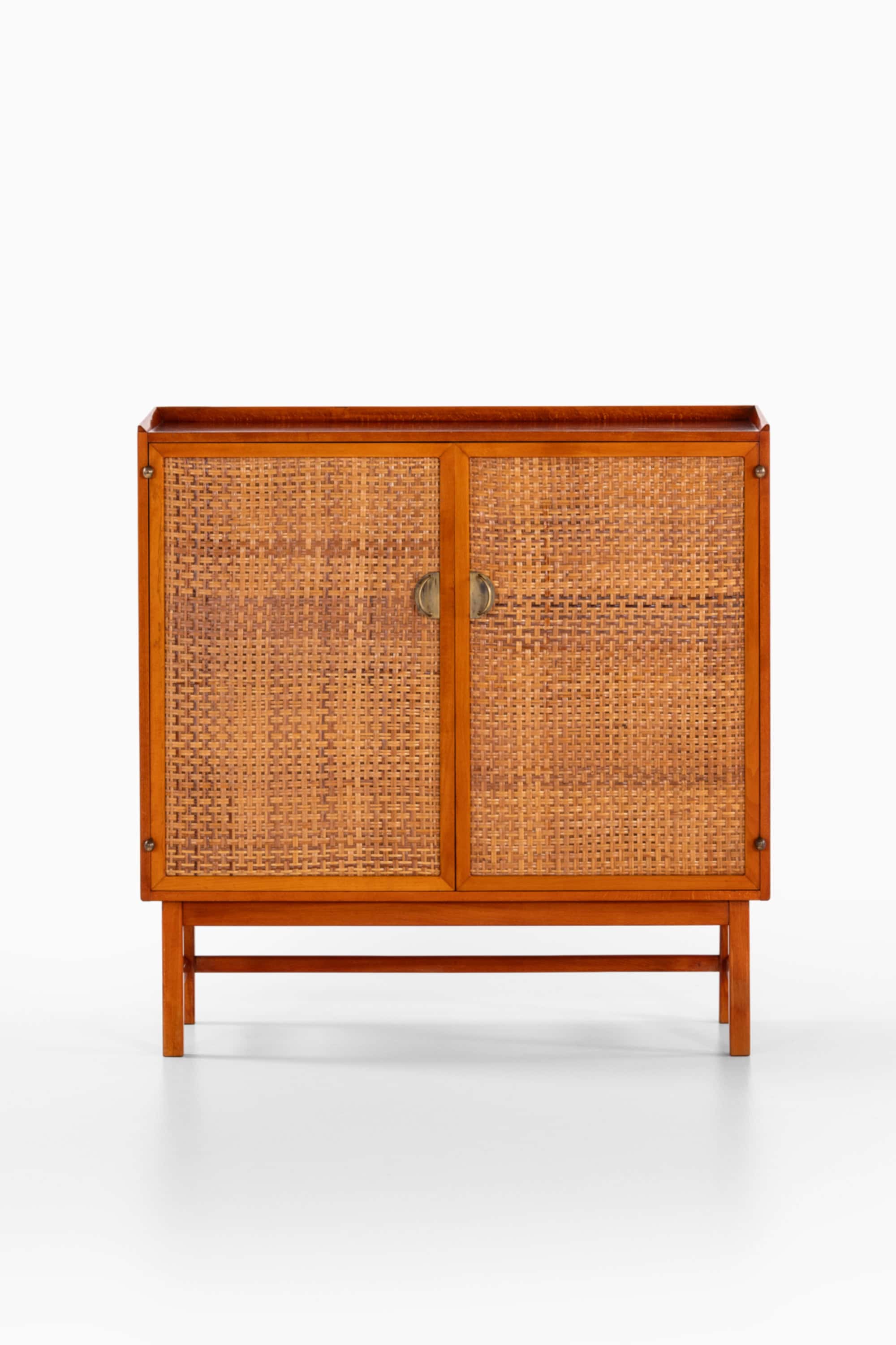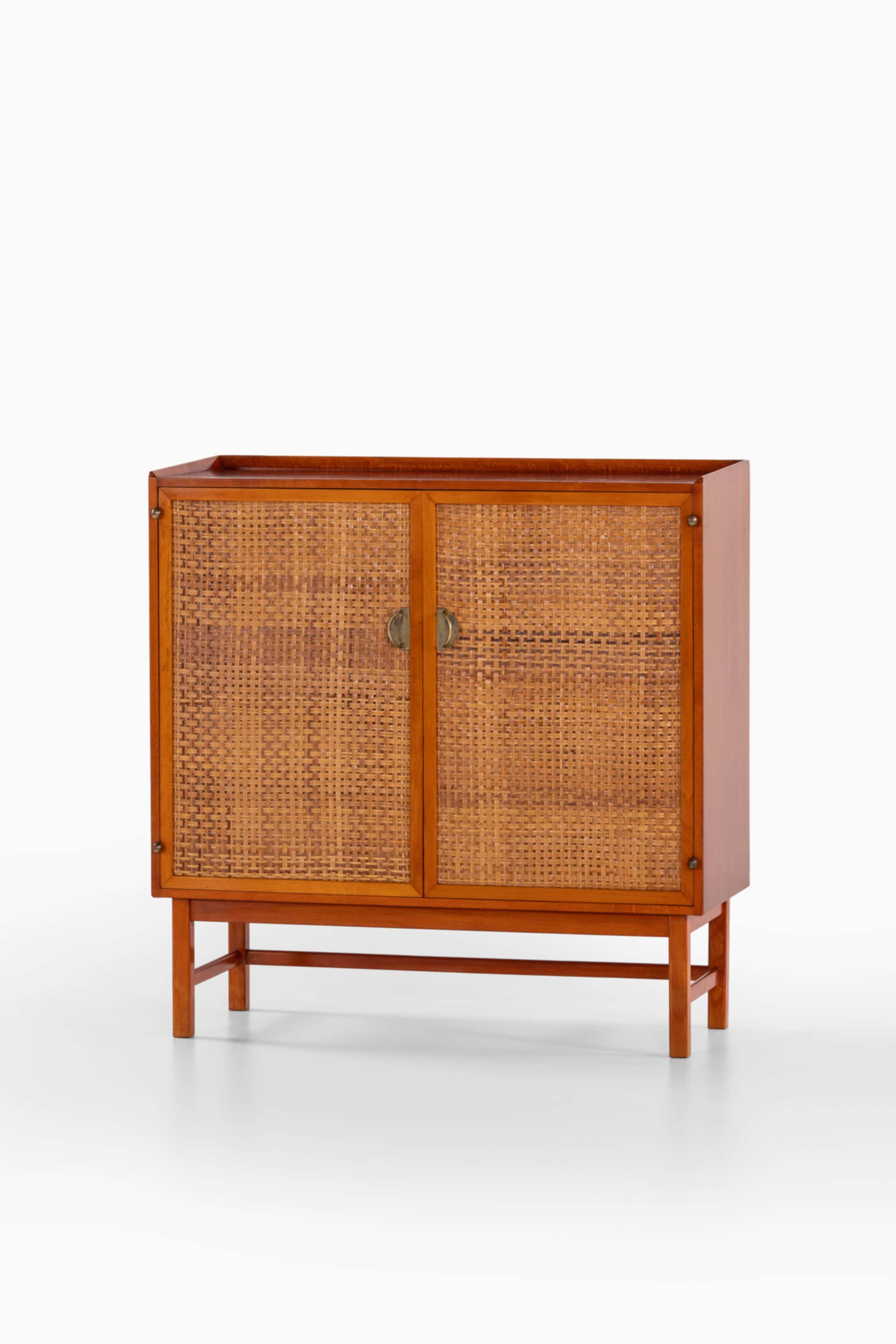 Westbergs Möbler of Tranås was known for high-quality production during the mid-20th century, and the Nizza model illustrates the manufacturer’s commitment to refined proportions, material harmony, and practical storage solutions. The combination of mahogany, cane, and brass reflects the 1950s Scandinavian interest in natural materials paired with restrained decorative accents.