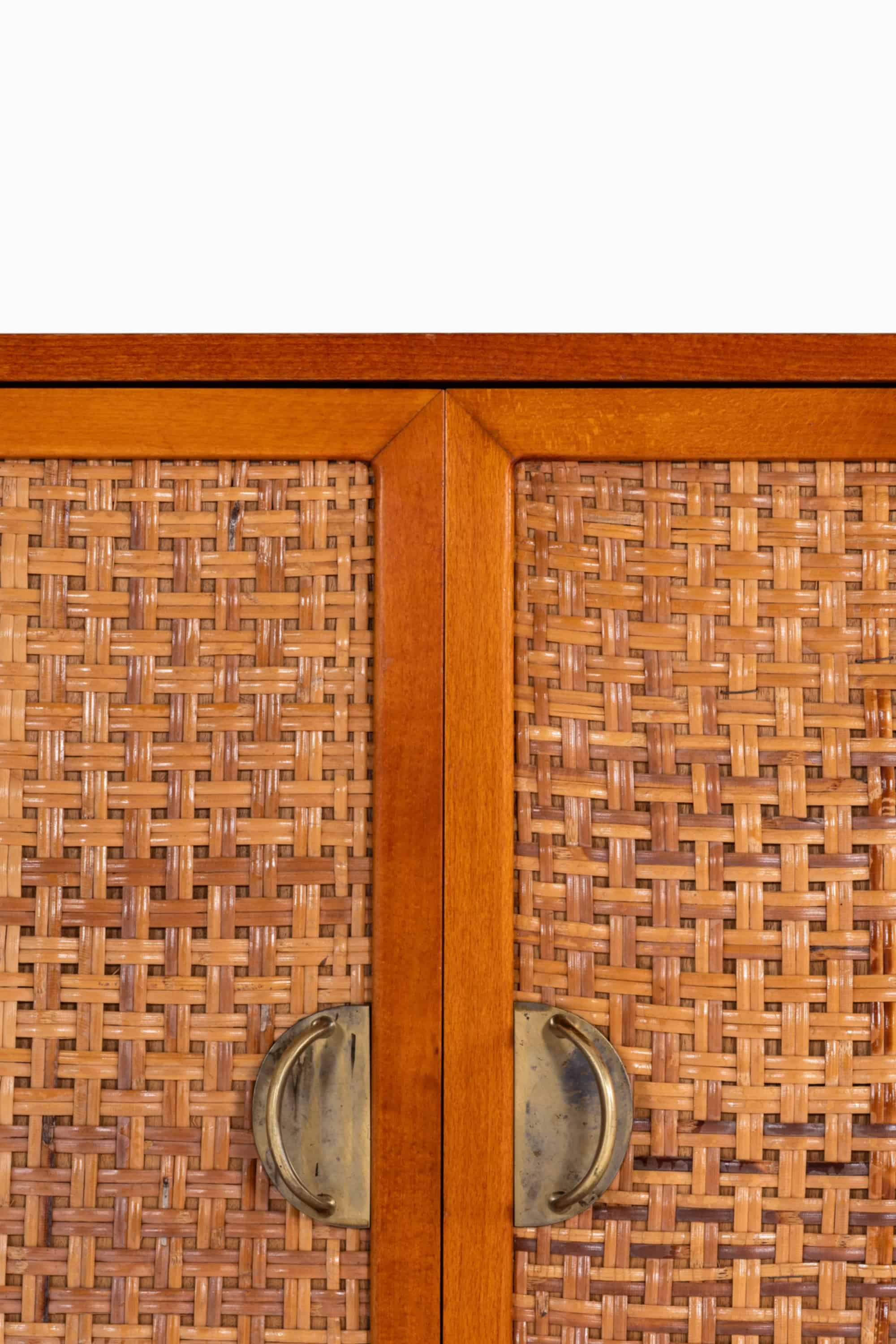 Rare Nizza cabinet produced by Westbergs Möbler in Tranås, Sweden during the 1950s. This model reflects the refined craftsmanship and material sensitivity characteristic of Swedish mid-century cabinetmaking, combining warm mahogany with woven cane panels and brass fittings.