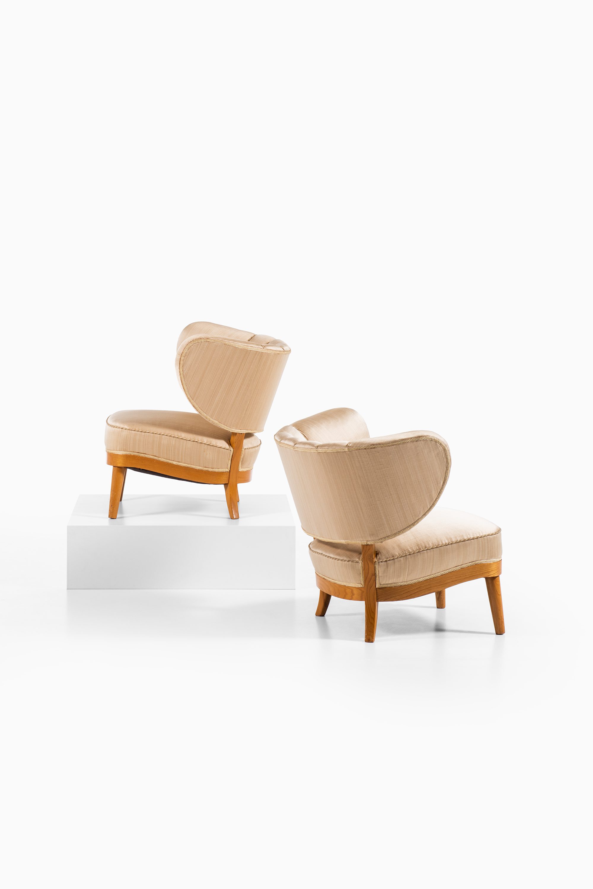 This very rare pair of easy chairs was designed by Otto Schulz and produced by Boet in Sweden during the 1930s. Schulz, a German-born architect and designer who settled in Gothenburg, is considered one of the leading figures of Swedish decorative arts between the wars. As founder and artistic leader of Boet, he created furniture and interiors that combined sculptural boldness with refined craftsmanship. His work often balanced modern functionalist tendencies with more expressive and decorative forms, resulting in highly distinctive pieces.