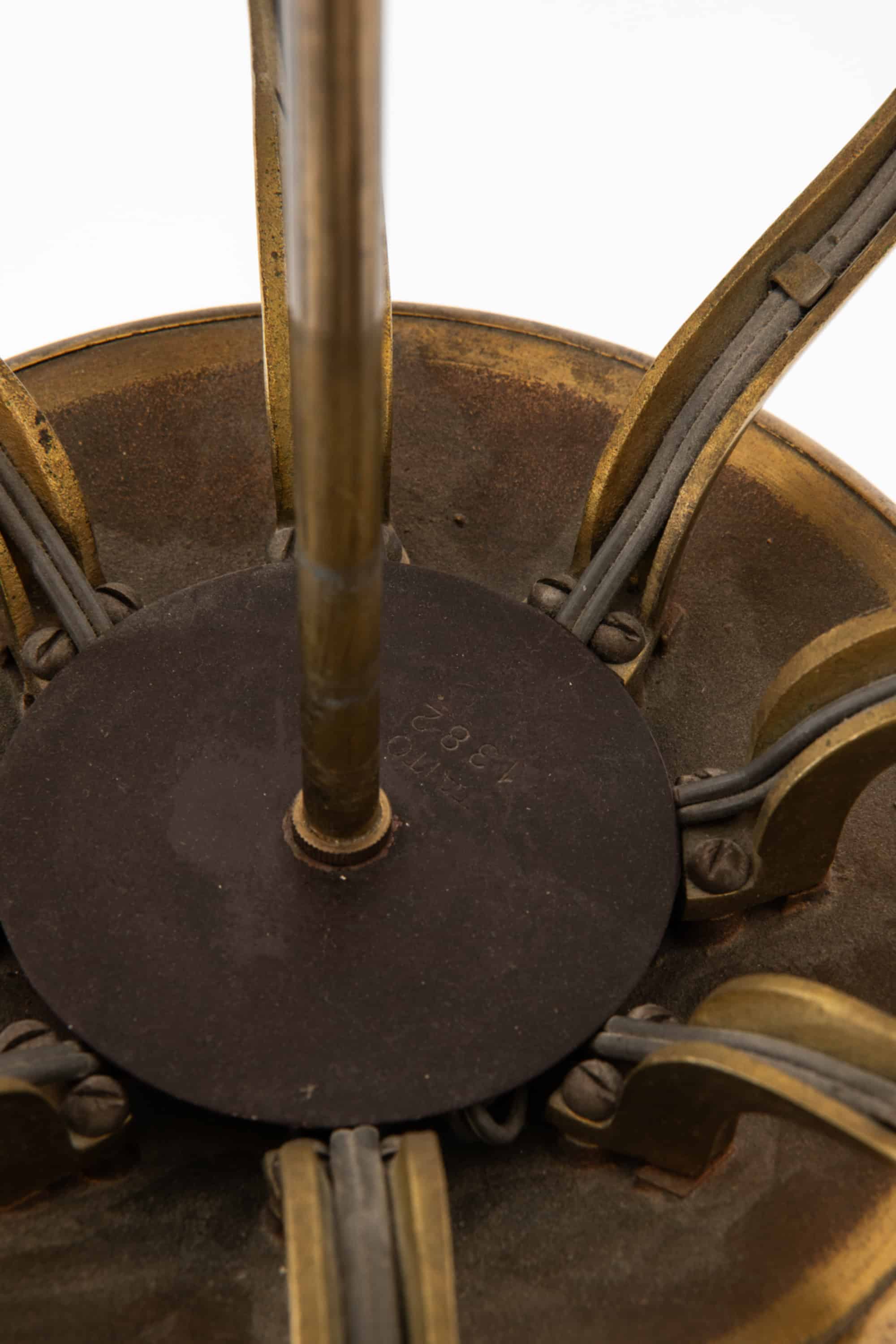 Paavo Tynell is widely regarded as one of the most important lighting designers of the Nordic modern movement. His work for Taito, where he served as artistic director, helped define Finnish lighting design from the 1930s through the postwar decades. Early models such as this one demonstrate his ability to merge decorative traditions with emerging modernist principles, often using brass, glass, and refined detailing to create lamps that were both functional and visually distinctive.