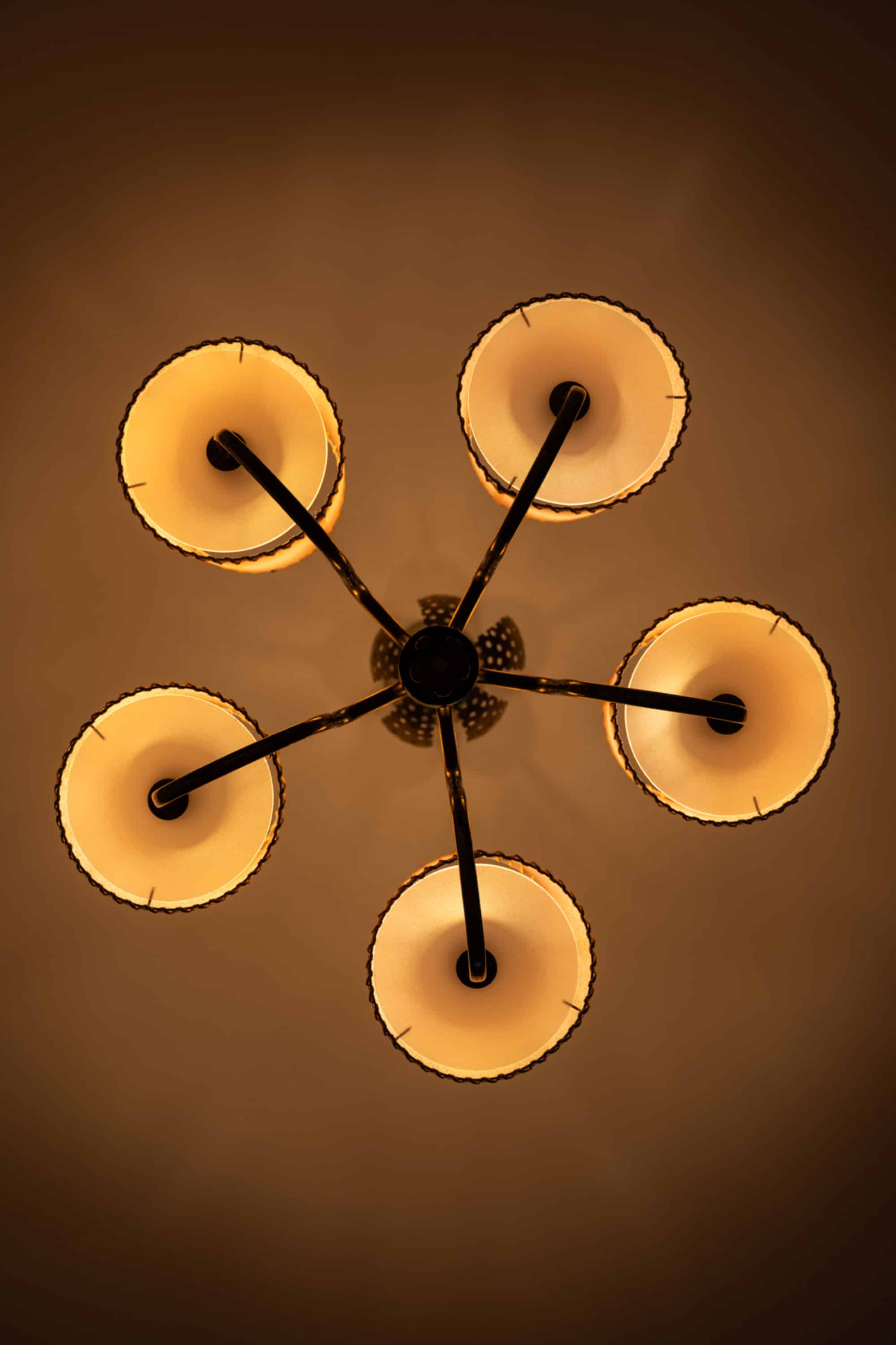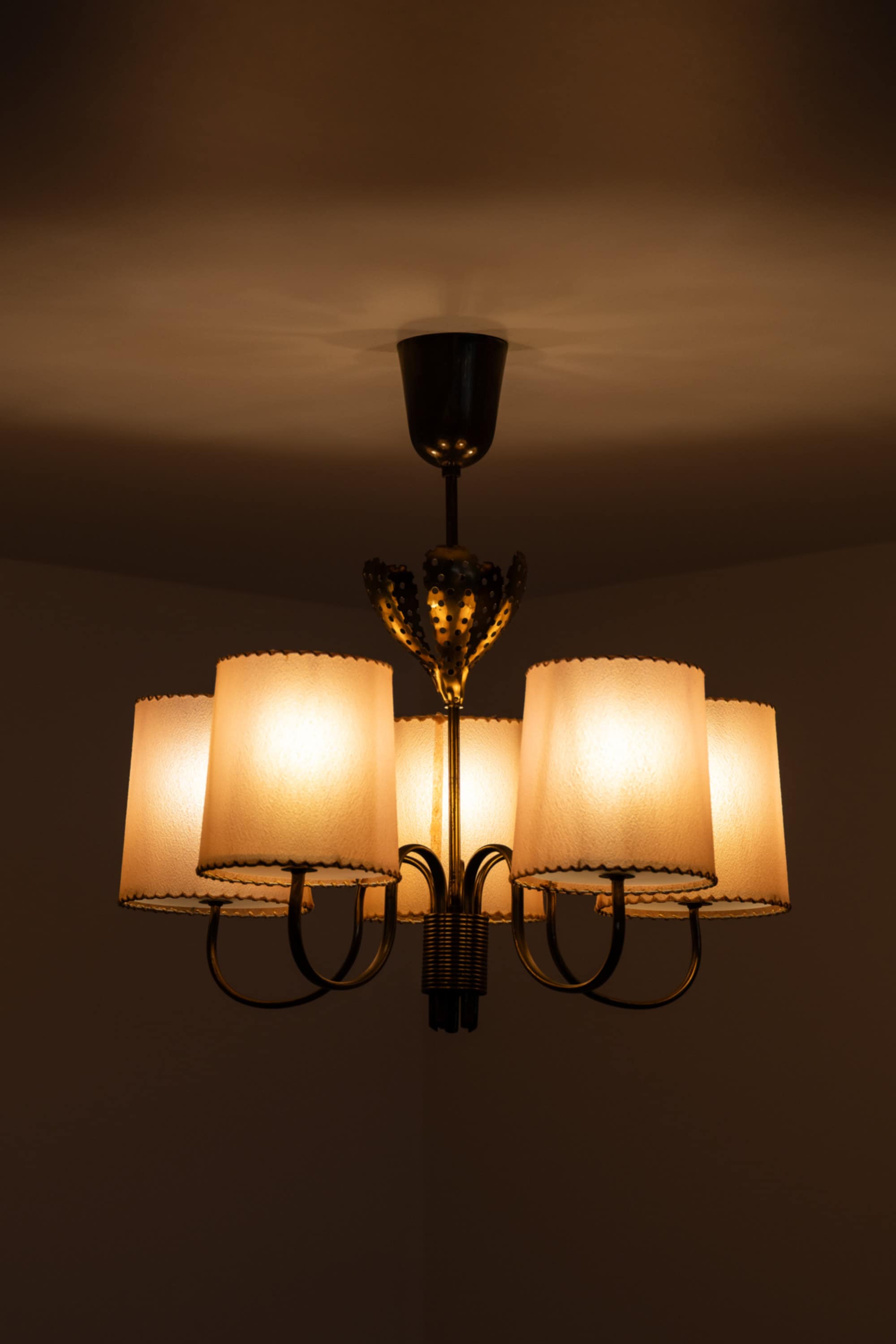 Paavo Tynell is regarded as one of the most important Nordic lighting designers of the 20th century and played a central role in establishing Finland’s reputation for high-quality lighting design. His lamps are characterized by a combination of delicate decorative motifs and precise metalworking, often using perforated brass, sculptural forms, and carefully engineered light diffusion. Taito Oy, where Tynell served as artistic director, was Finland’s leading lighting manufacturer during the period and produced many of the country’s most iconic modern lighting fixtures.