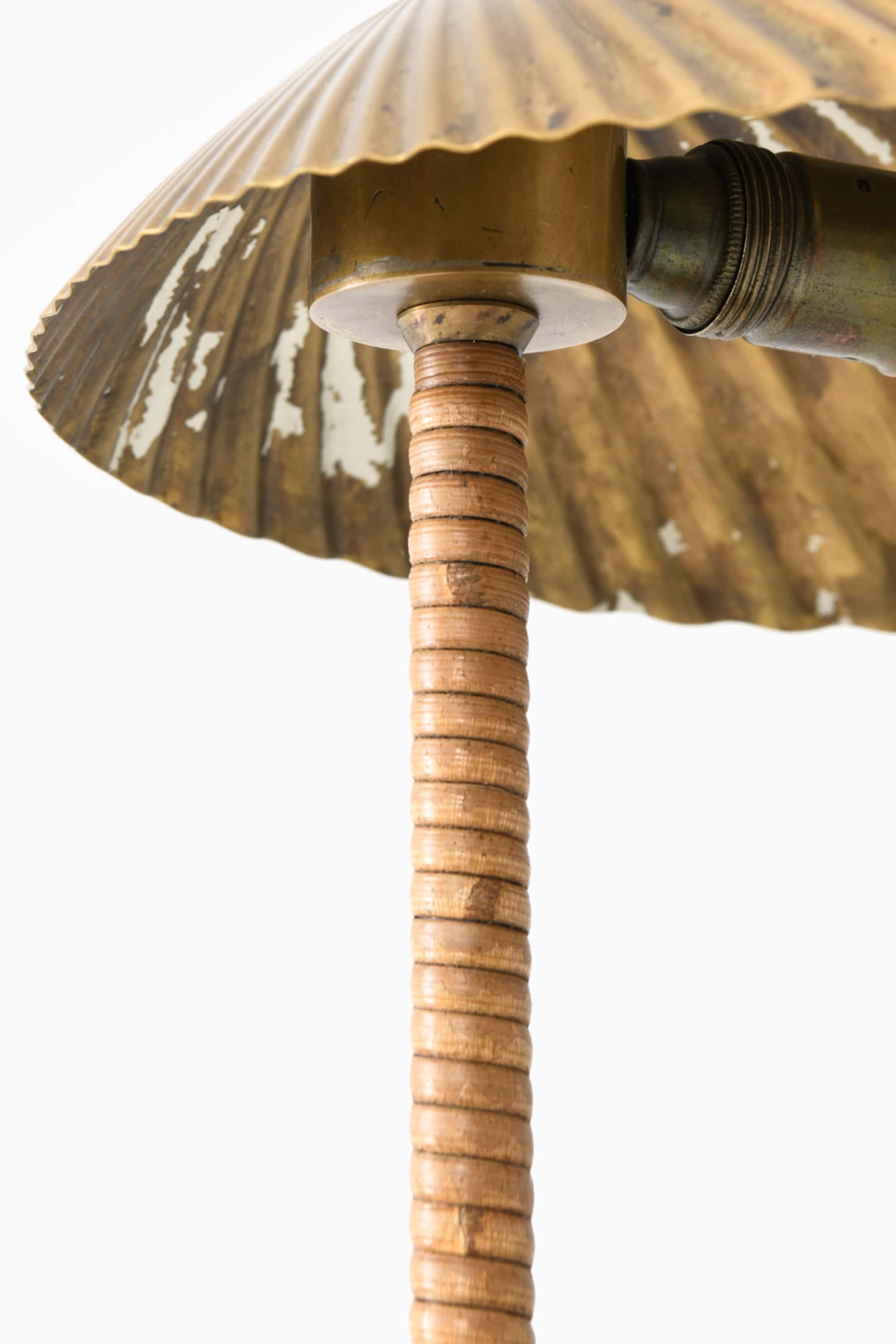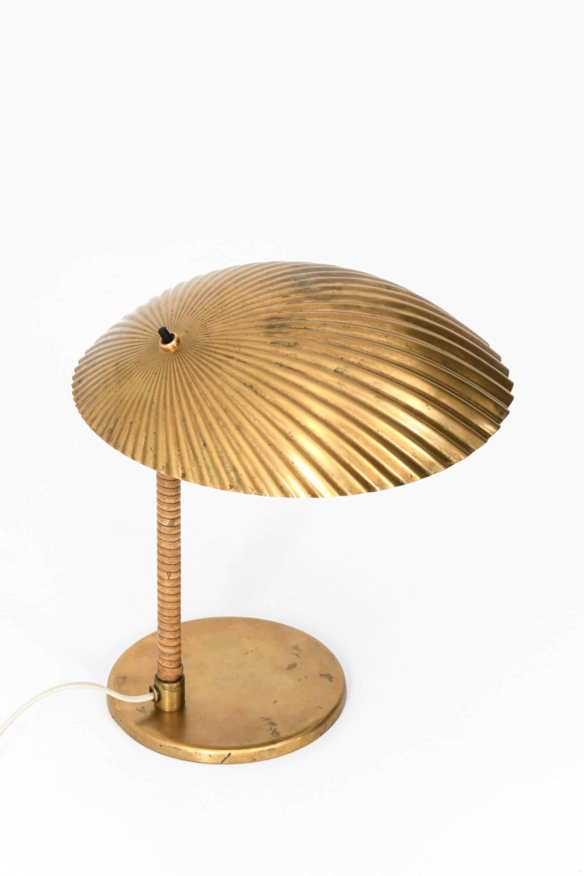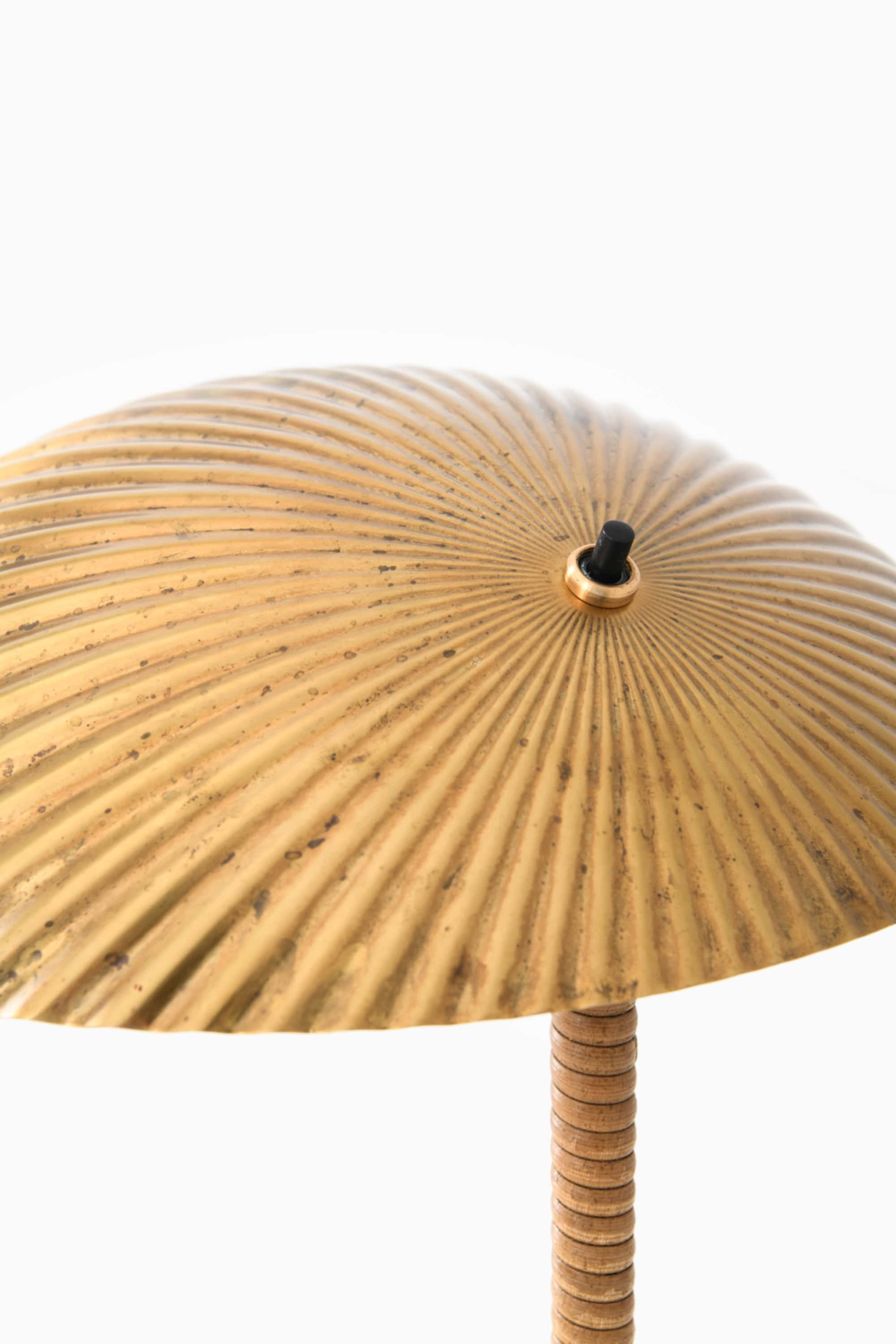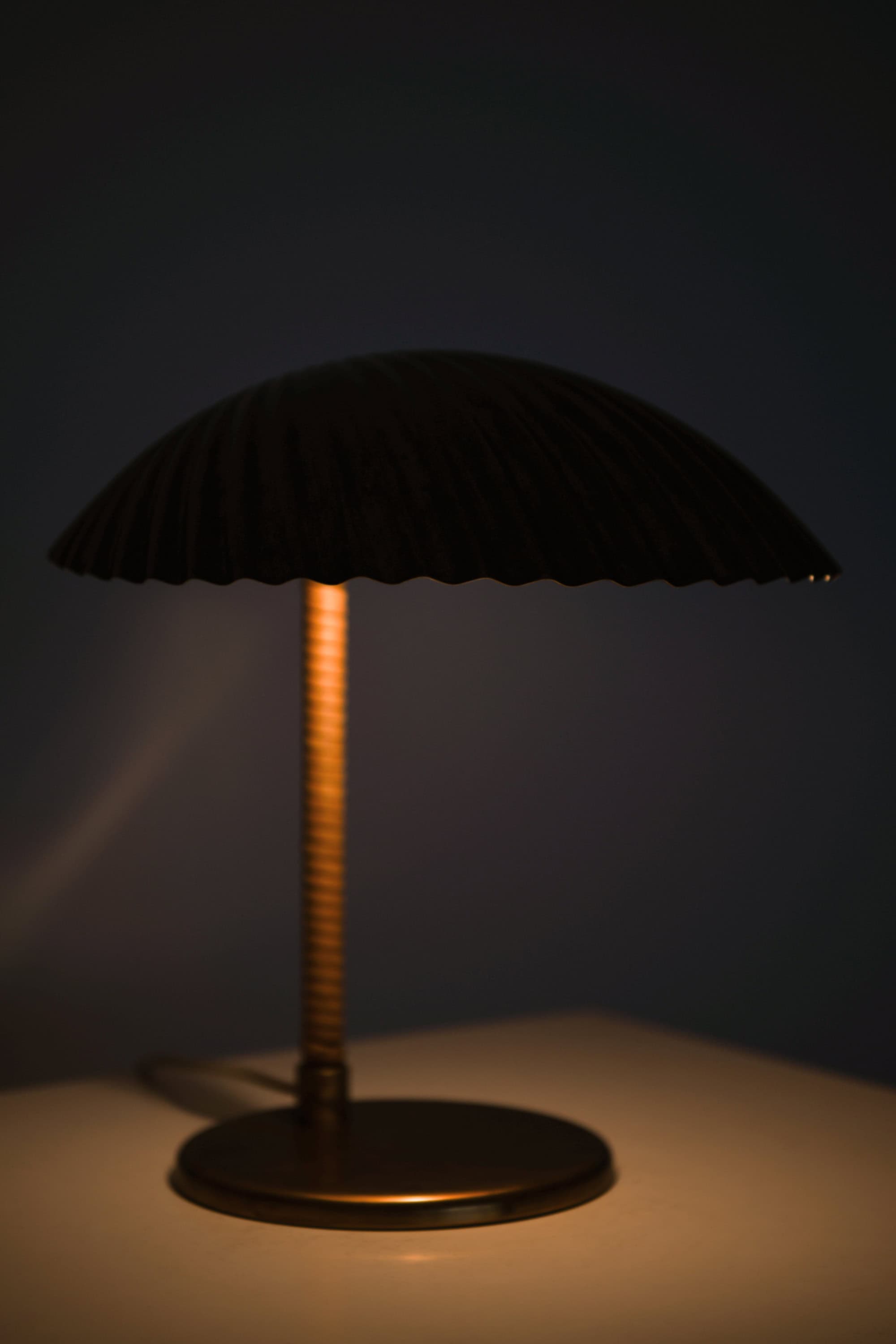 In use, the lamp emits a warm, atmospheric light, with illumination directed primarily downward and softly diffused by the sculptural shade. This makes it suitable as a table or accent lamp, where ambient lighting and visual presence are equally important. The design reflects Tynell’s broader design philosophy of the period, blending craftsmanship, natural materials, and elegant proportions in a manner that is both decorative and restrained.