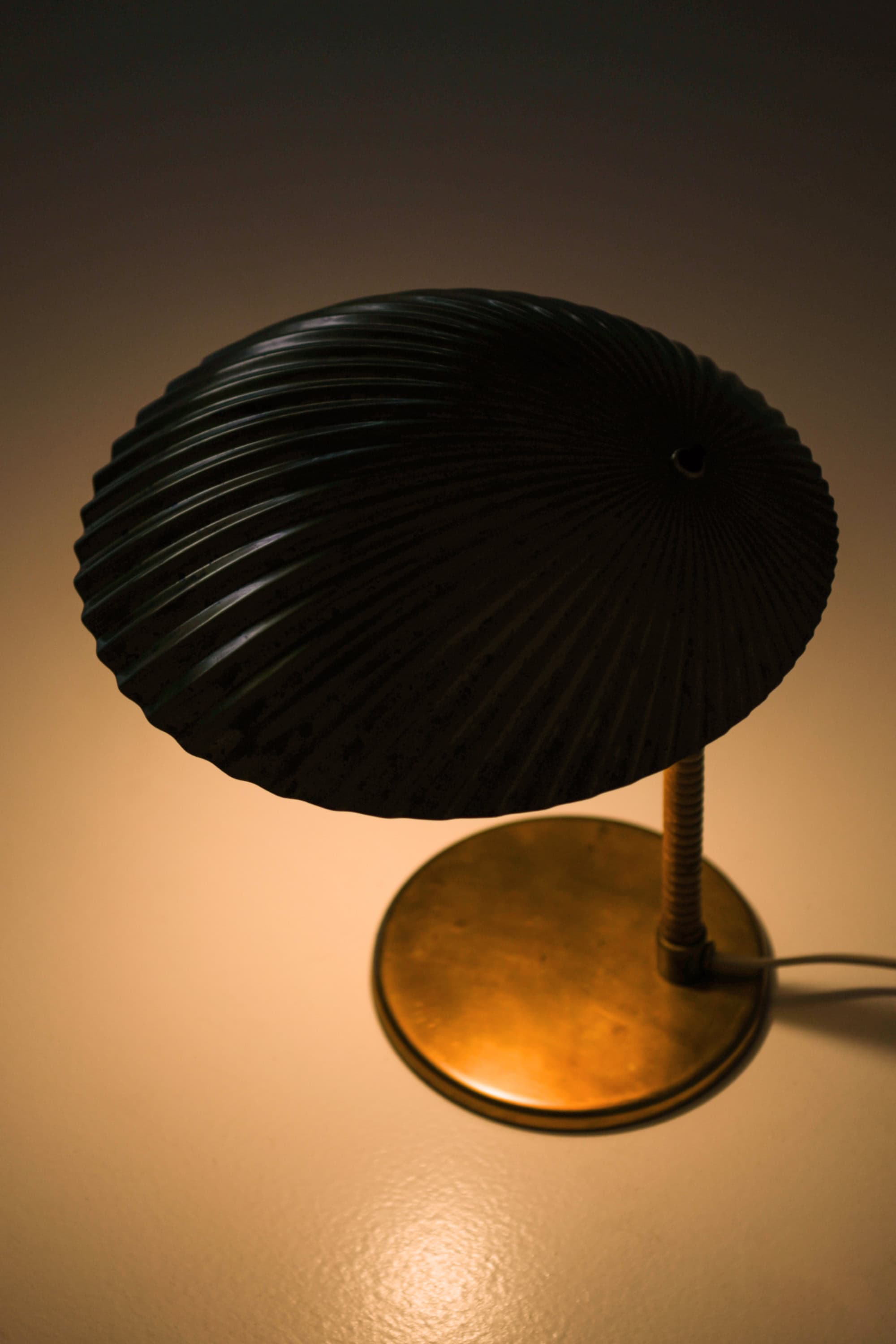 This table lamp, model 5321, often referred to as the “Shell” lamp, was designed by Paavo Tynell and produced by Taito Oy in Finland during the 1940s. The model is a well-documented example of Tynell’s sculptural approach to lighting design, where functional illumination is combined with refined material treatment and organic form.