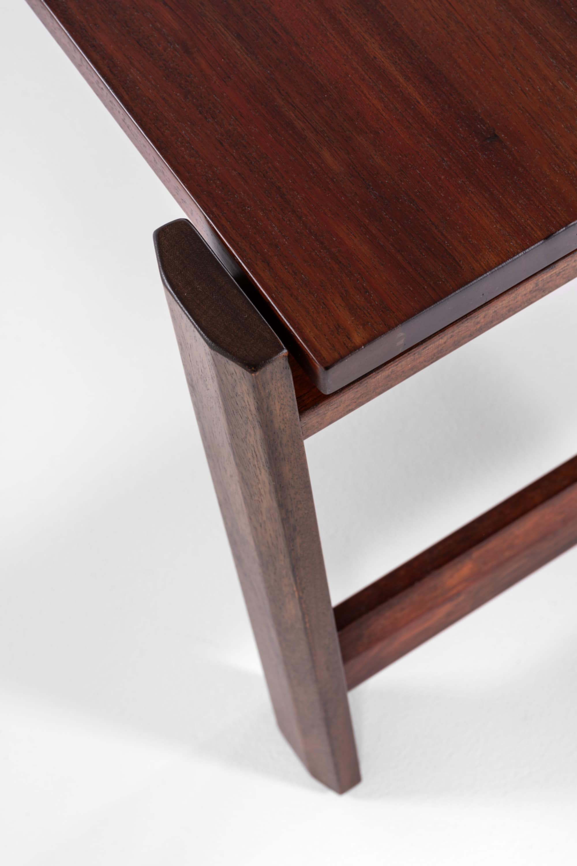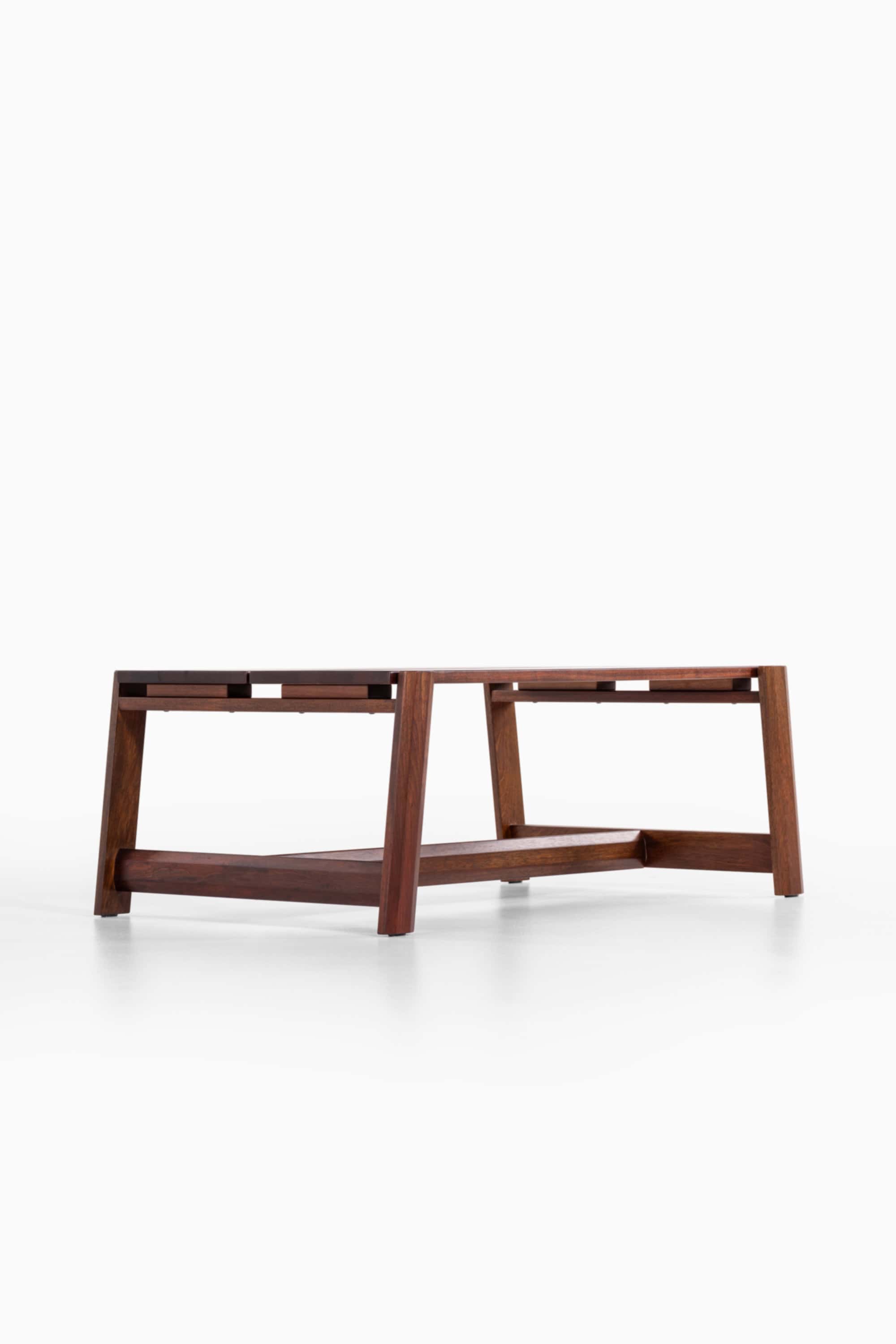 This coffee table is attributed to the Brazilian designer Percival Lafer and was produced by Lafer MP in Brazil during the 1960s. The design reflects the principles of Brazilian modernism, a movement that combined modernist structural clarity with an emphasis on rich natural materials and expressive wood craftsmanship. During the post-war decades Brazil developed a distinctive modern design language, often characterized by robust wooden constructions, architectural forms, and carefully balanced proportions.