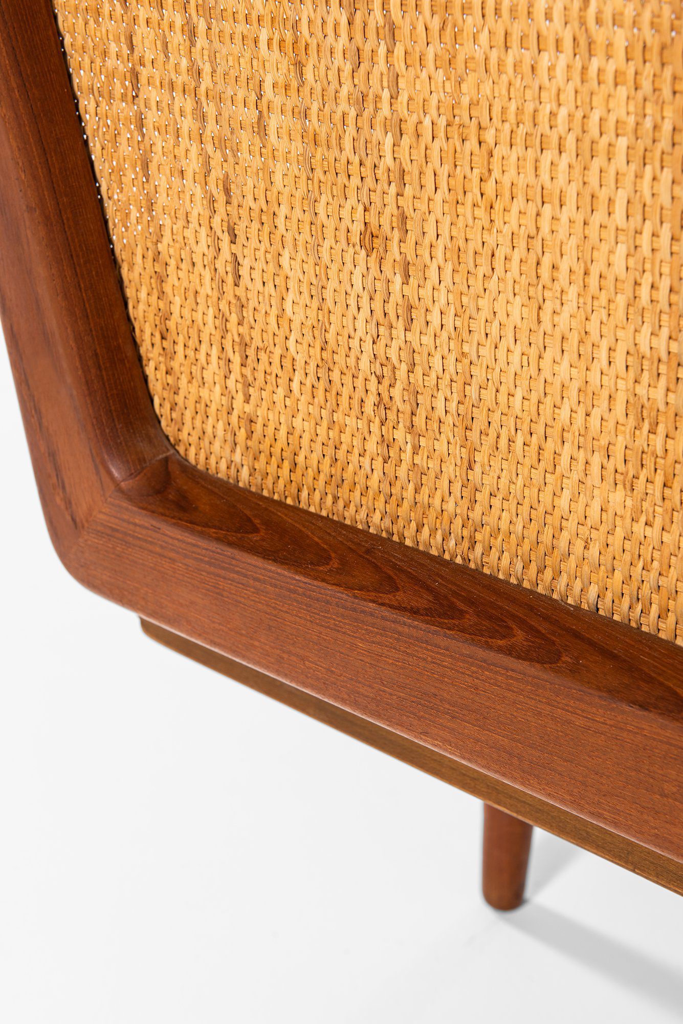 This example remains in excellent vintage condition, showing only minor wear consistent with age and careful use. The cane panels are intact, and the teak has developed a rich, even patina that highlights the grain. The piece stands as a classic representation of Scandinavian modern design—functional, restrained, and beautifully crafted.