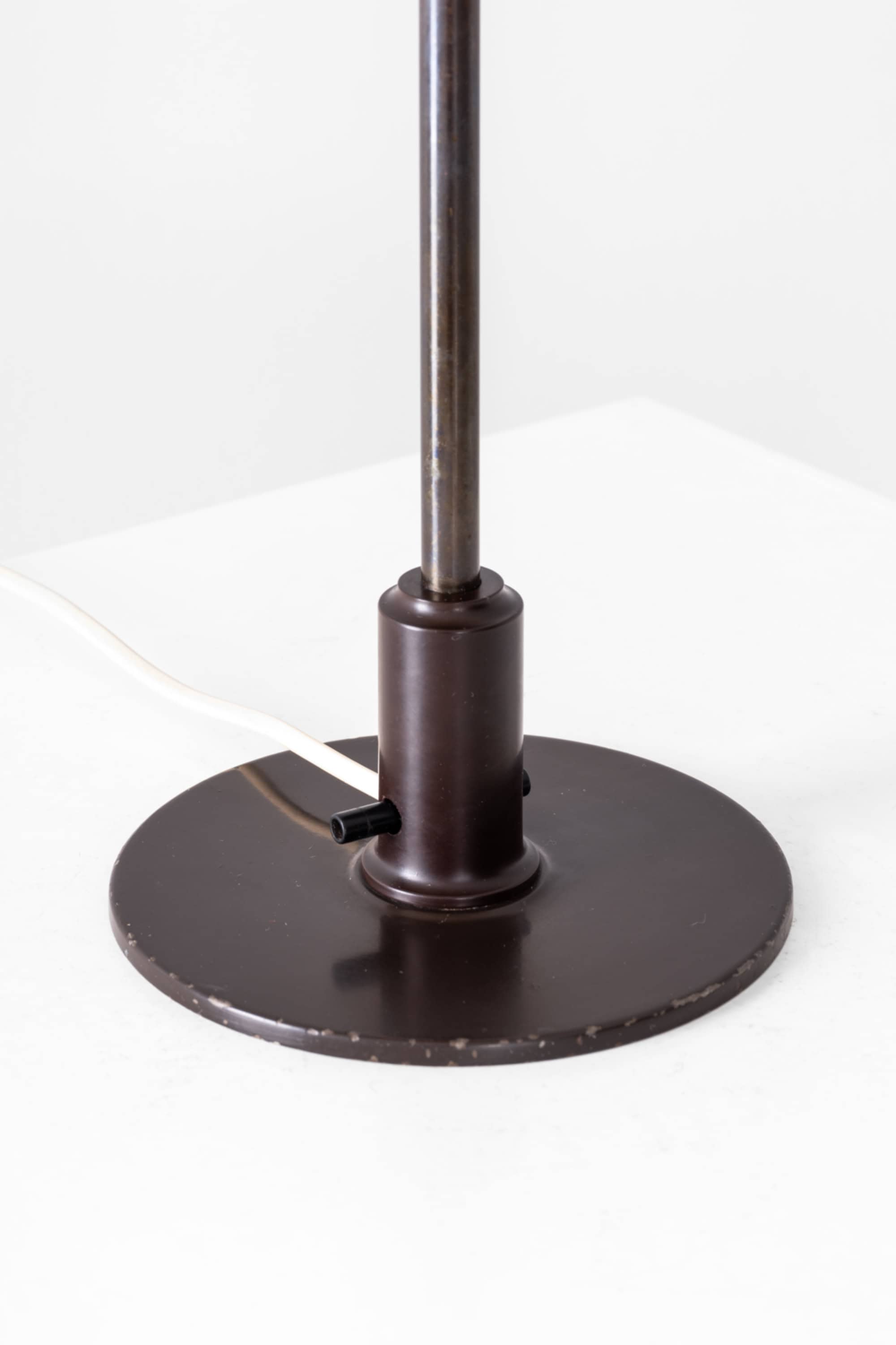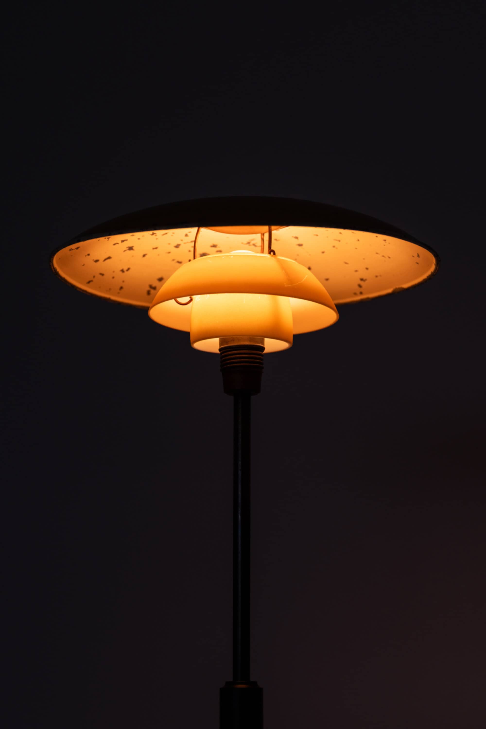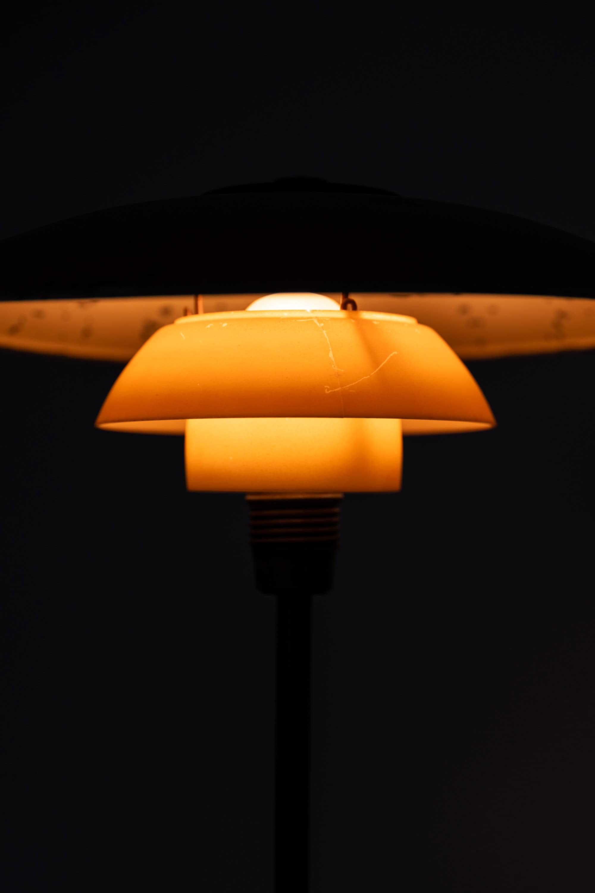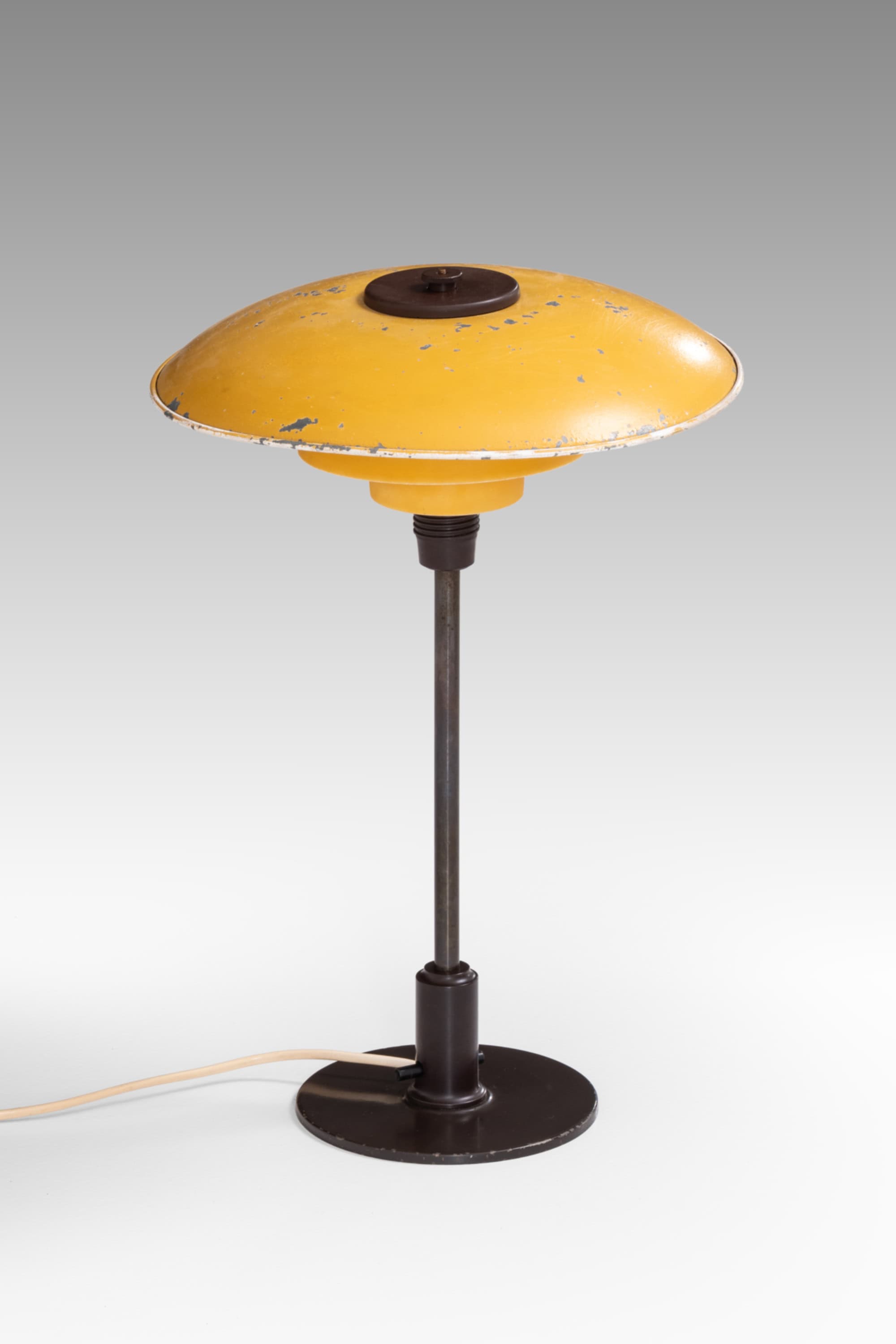 This PH-3/2 table lamp is an early example of Poul Henningsen’s pioneering work with glare-free lighting, designed and produced in Denmark by Louis Poulsen during the 1940s. The lamp belongs to the celebrated PH system, developed to control light through a carefully calculated arrangement of shades, creating an even, comfortable illumination while keeping the light source discreetly concealed.
