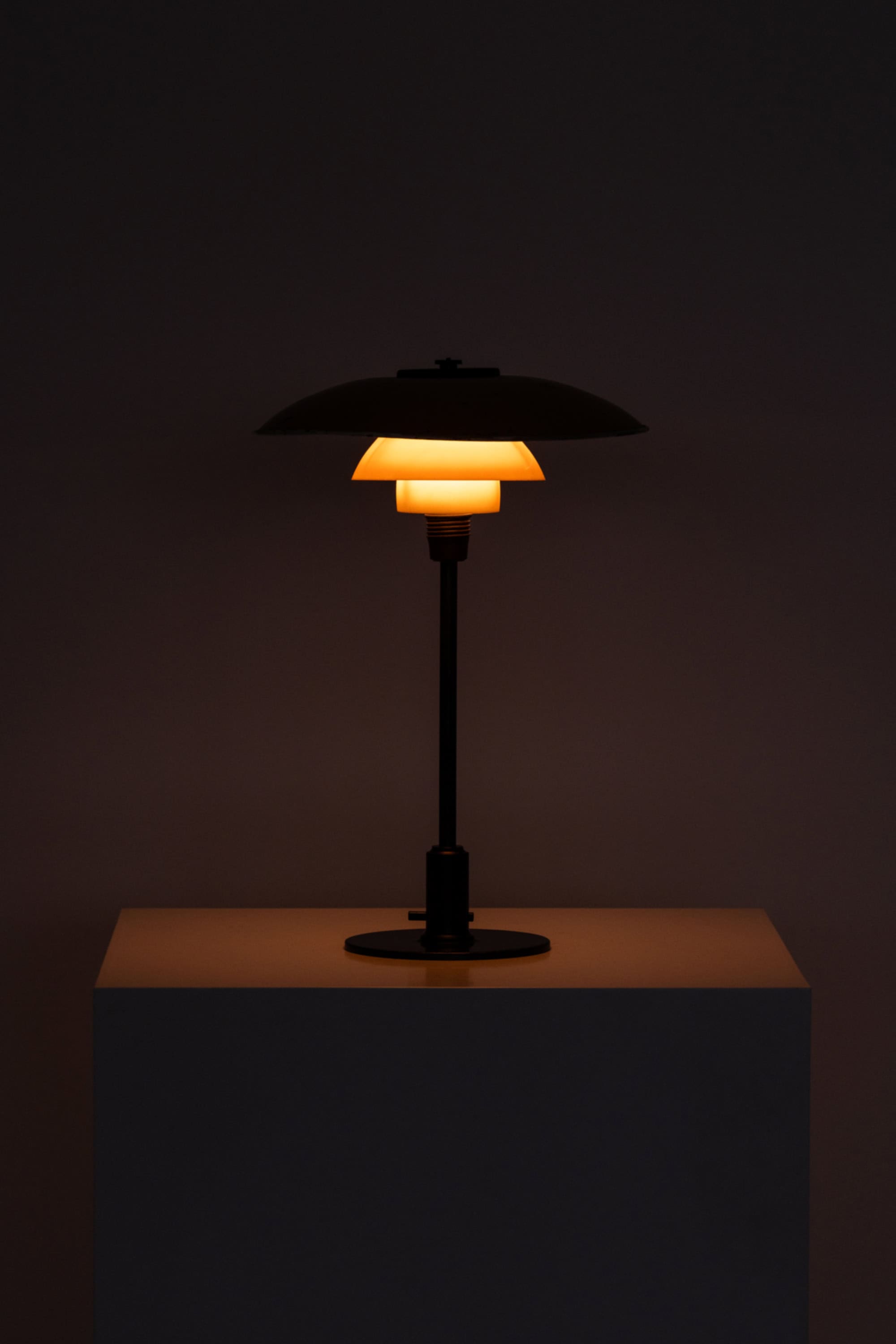 When lit, the PH-3/2 produces a warm, atmospheric glow, directing light primarily downward while gently illuminating the surrounding space. This makes it particularly well suited for use on a desk, sideboard, or bedside table, where both functional light and visual calm are desired. The design reflects Henningsen’s belief that good lighting should serve human comfort first, an approach that remains timeless and relevant.