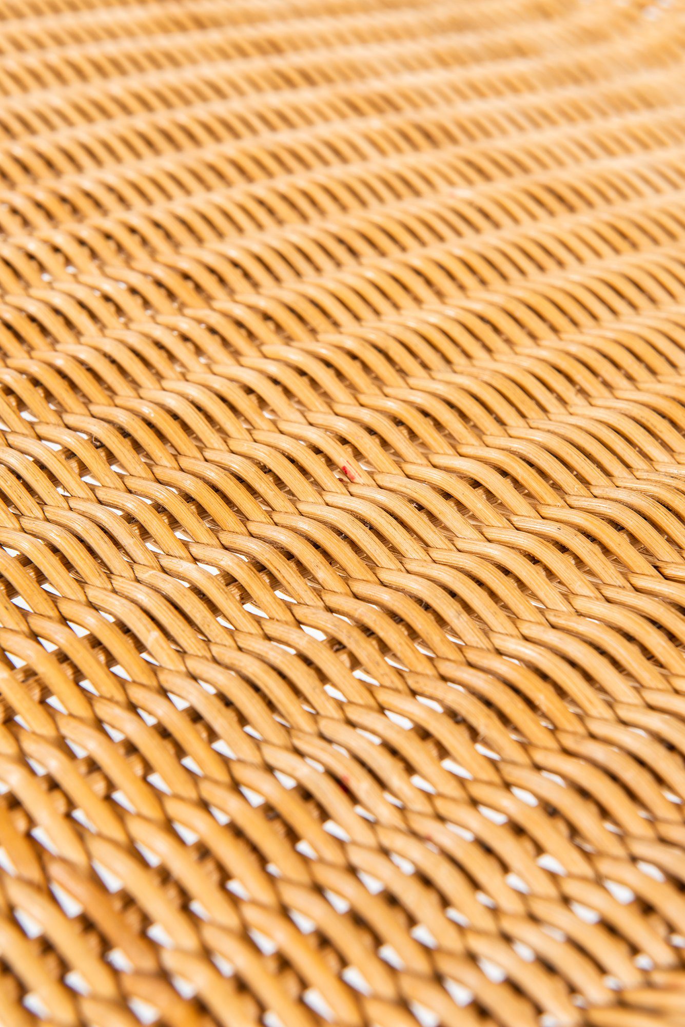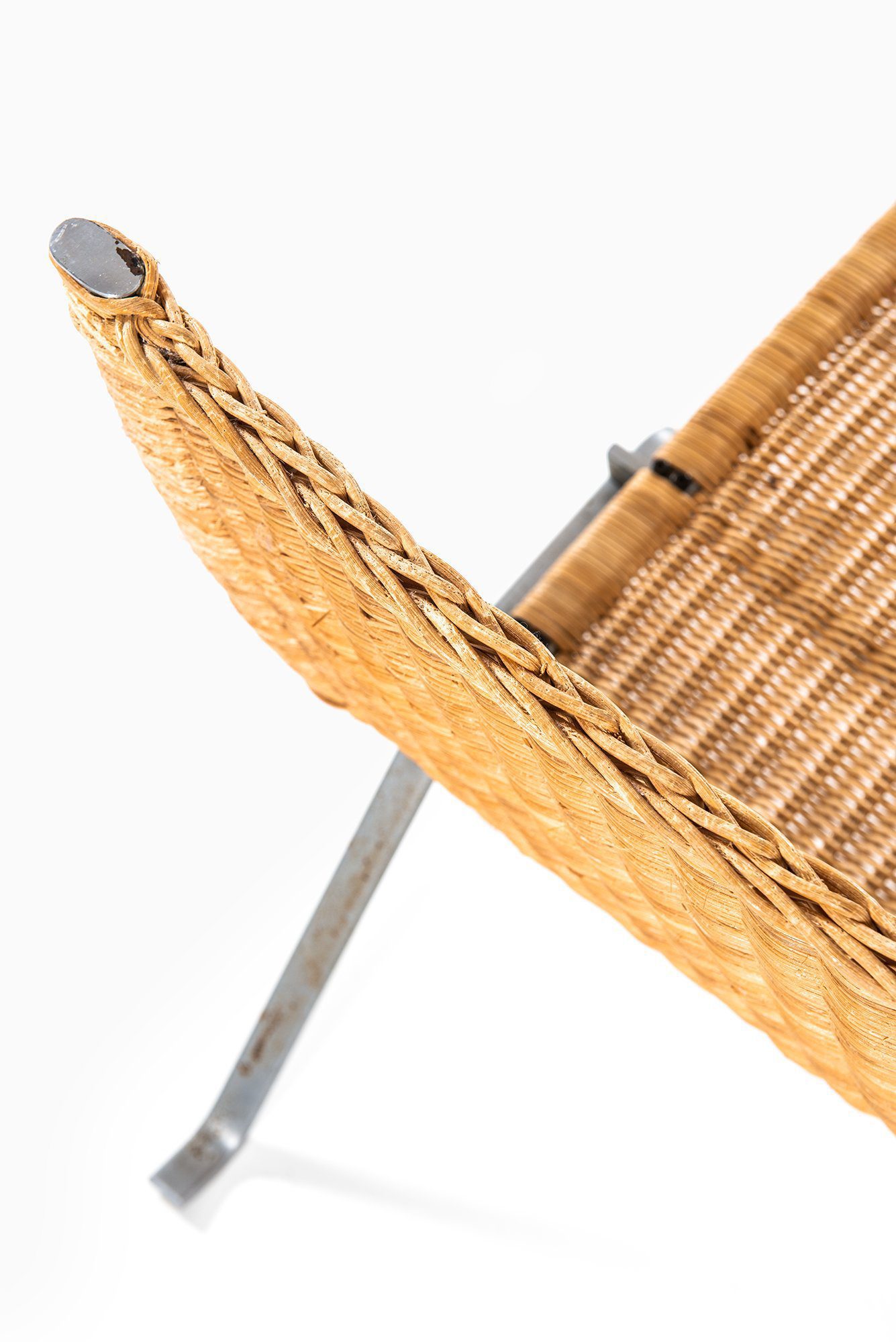 The chair is in good vintage condition, showing signs of use and an attractive, honest patina to both the steel and the rattan. There are no structural issues, and the weaving remains intact and stable.