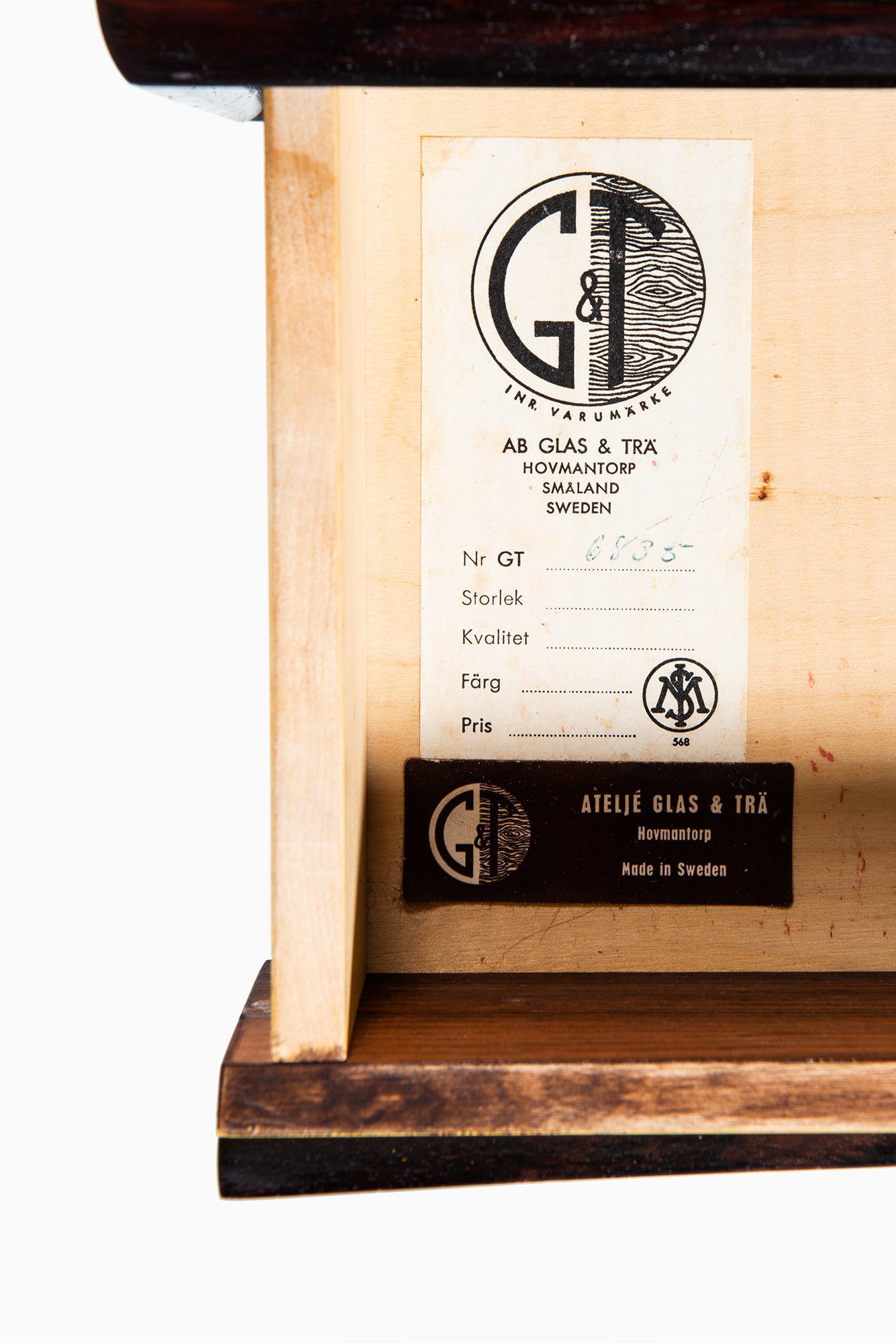 The construction reveals careful attention to proportion and joinery, reflecting Sandholt’s architectural approach to furniture design. Produced by Glas & Trä, a Småland-based manufacturer known for its combination of wood and modern materials, these tables represent a rare and sophisticated example of Swedish craftsmanship from the period.