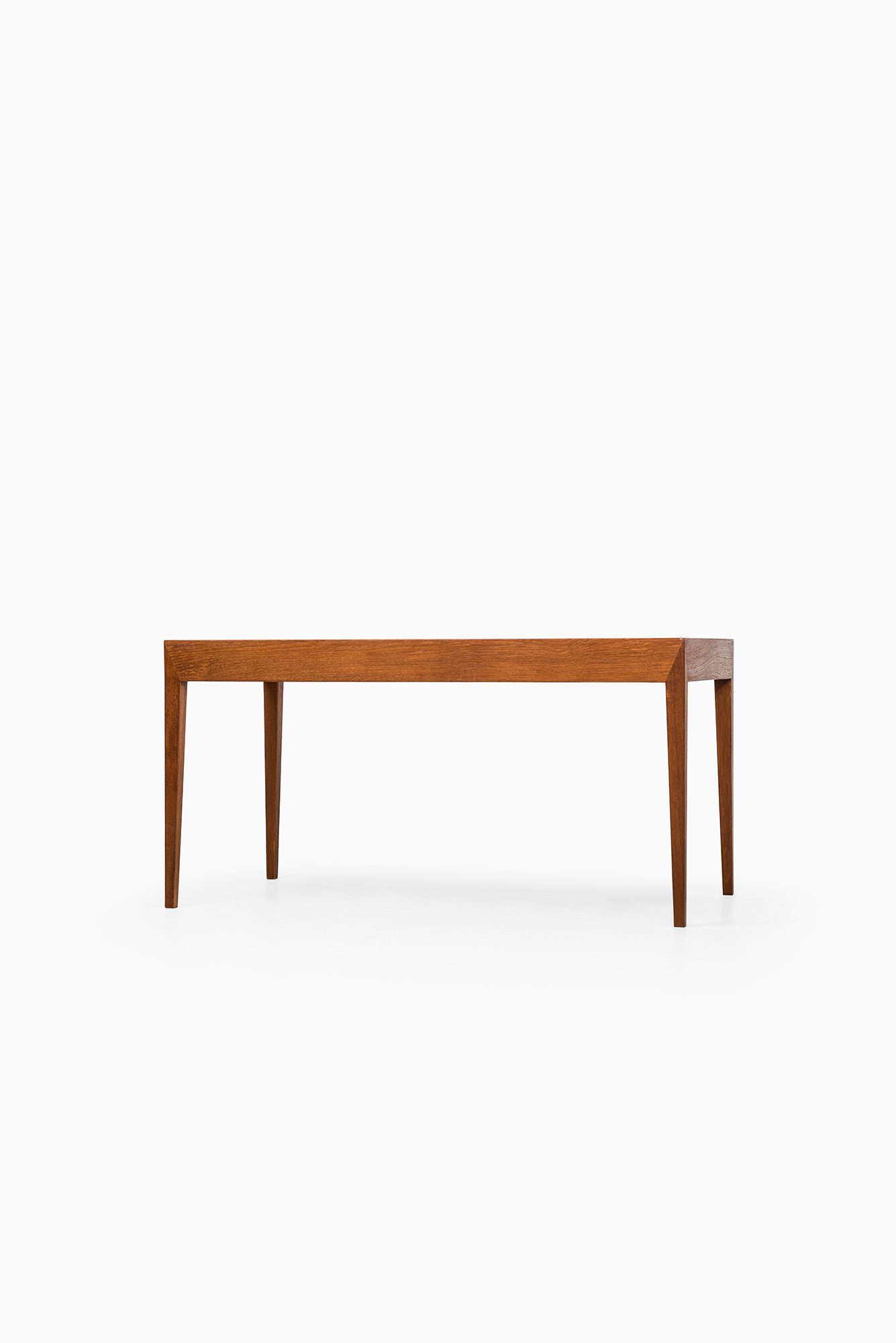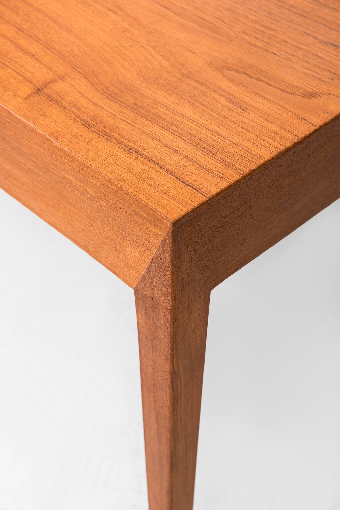 Severin Hansen was a leading Danish furniture designer known for his work during the mid-20th century, particularly with Haslev Møbelsnedkeri. His designs are recognized for their clarity of line, exact proportions, and mastery of joinery. The distinctive mitered corners that define many of his pieces have become a signature of his style, emphasizing geometric purity and structural elegance. Hansen’s work belongs firmly within the canon of Scandinavian modern design, where function and form are distilled to their essentials.