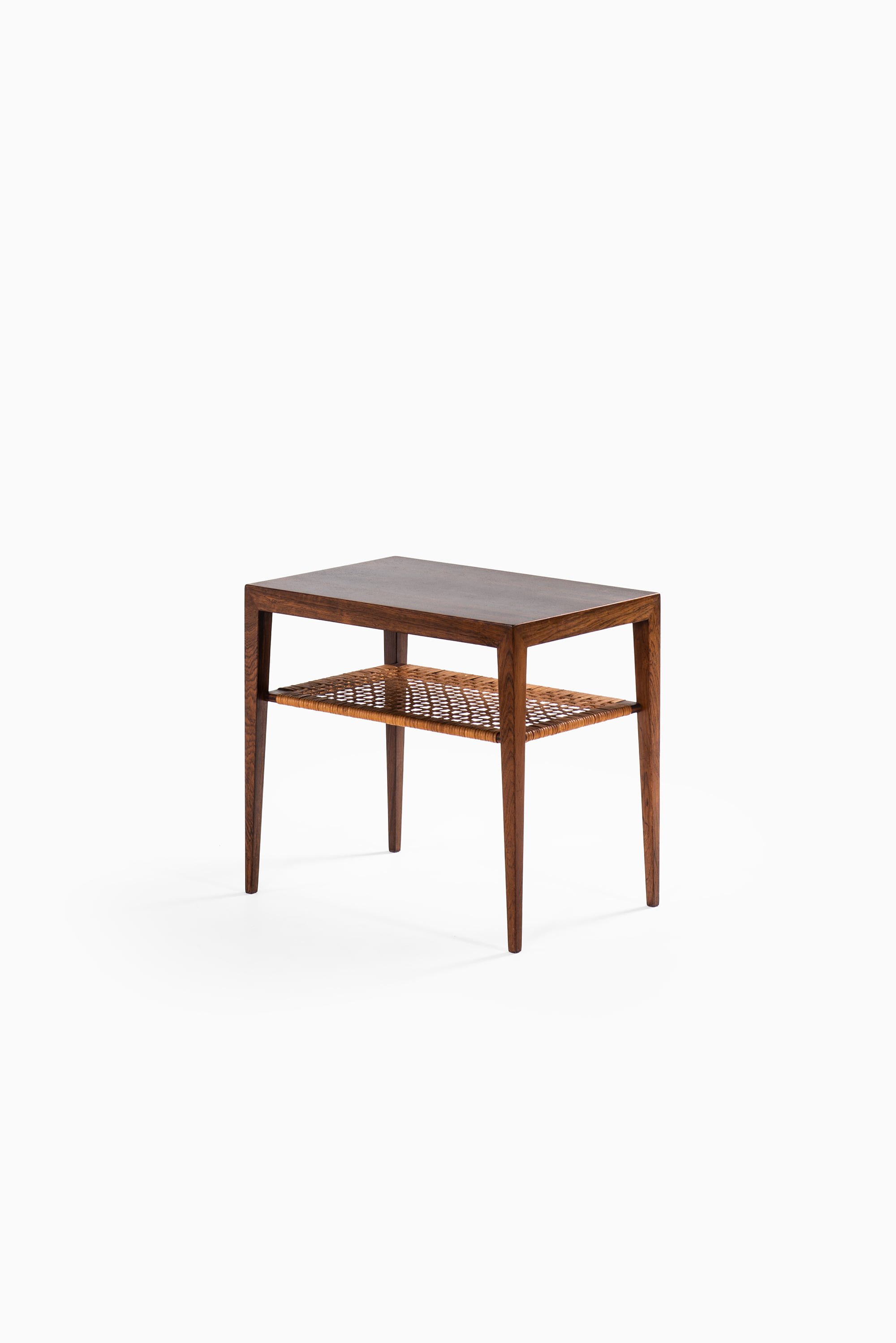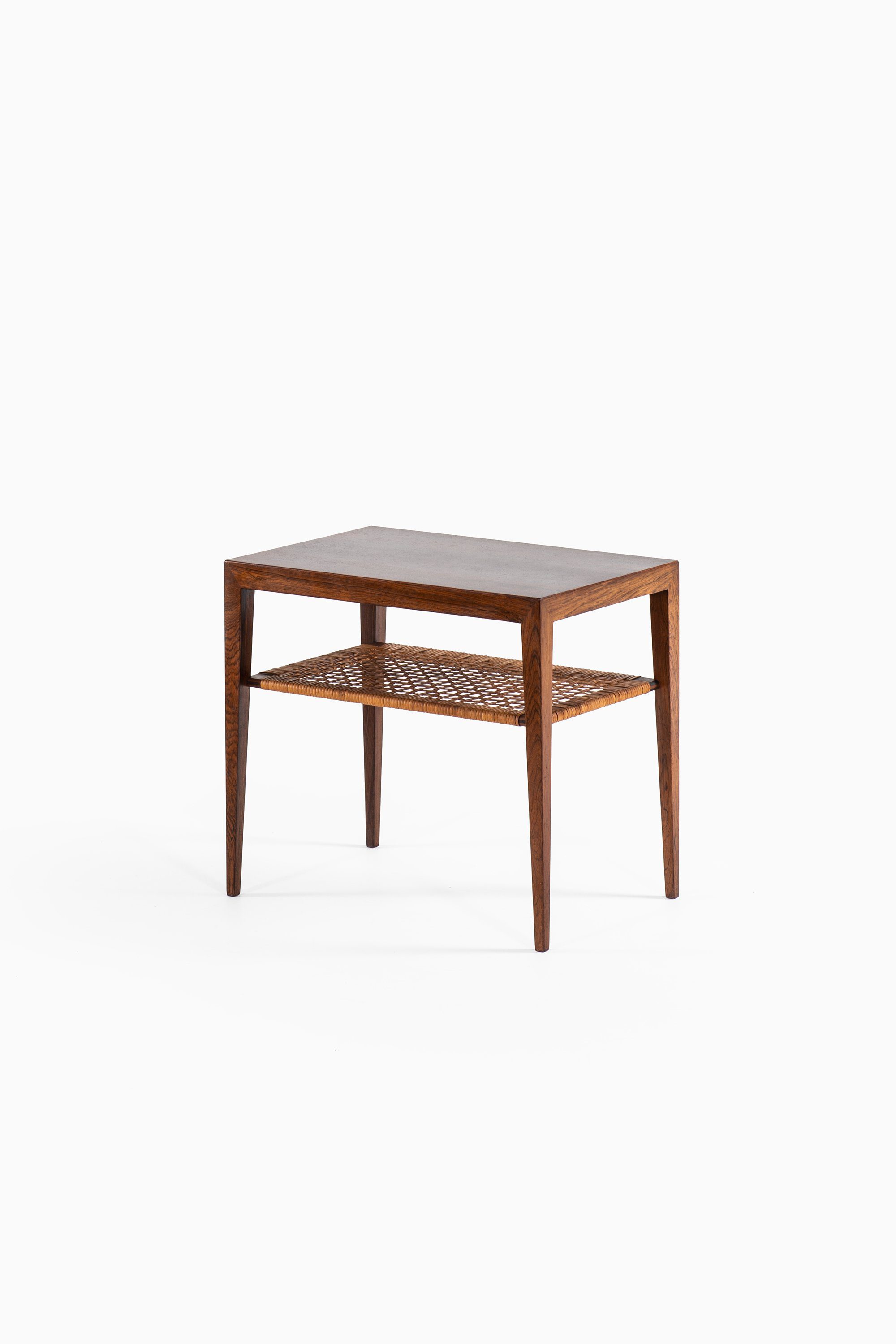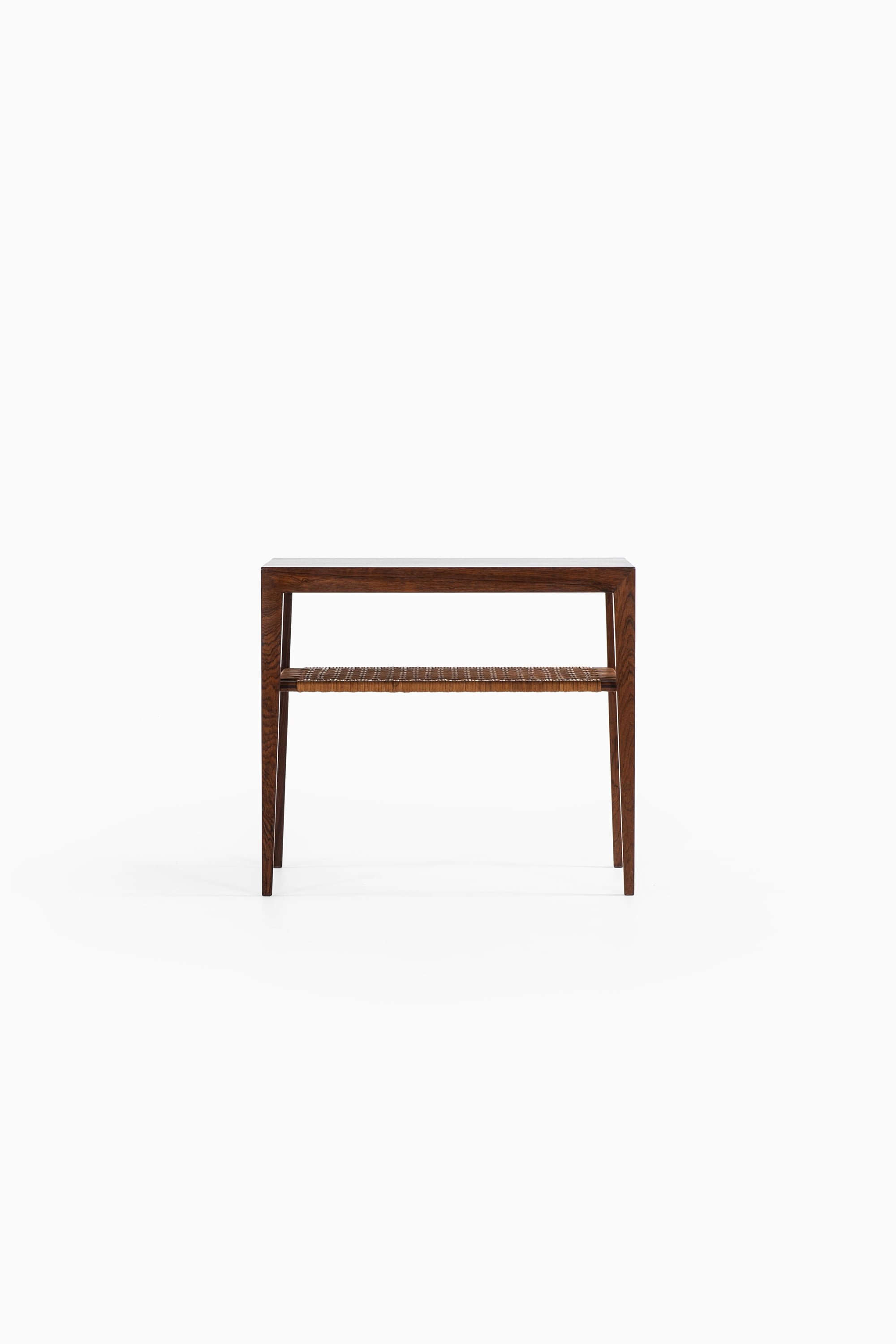 This rare side table was designed by Severin Hansen and produced by Haslev Møbelsnedkeri in Denmark during the 1950s. Hansen, a prominent figure in Danish modern furniture design, was celebrated for his refined sense of proportion, precise detailing, and exceptional craftsmanship. His work often combined strict functionalism with an understated elegance, characteristics that made his designs highly sought after in the mid-century era and beyond.