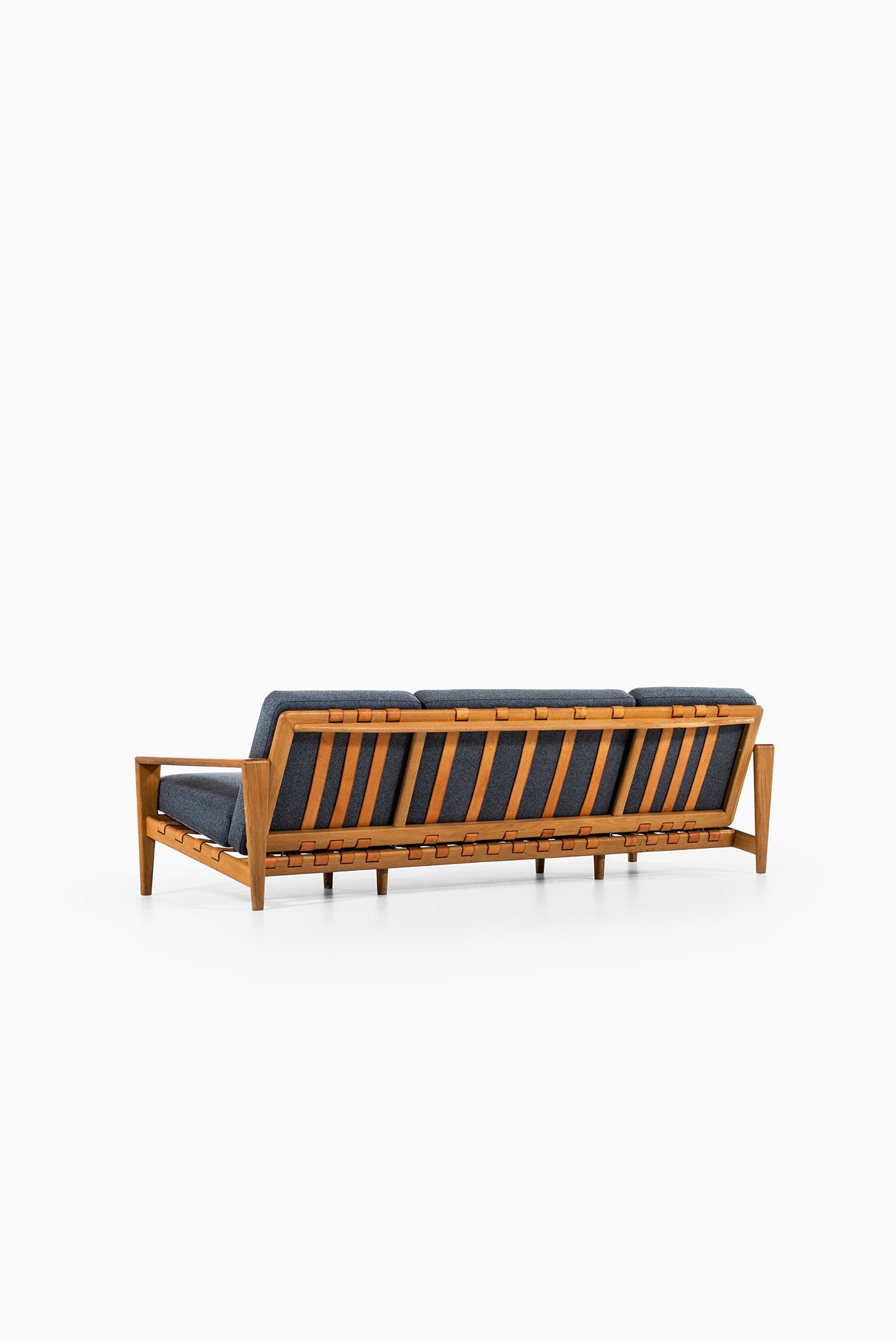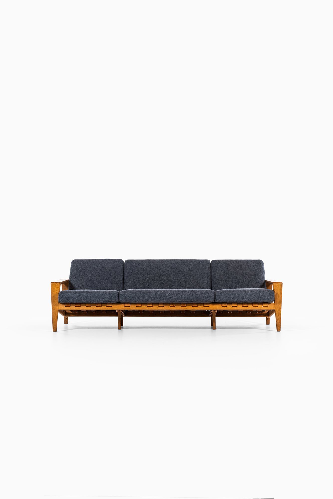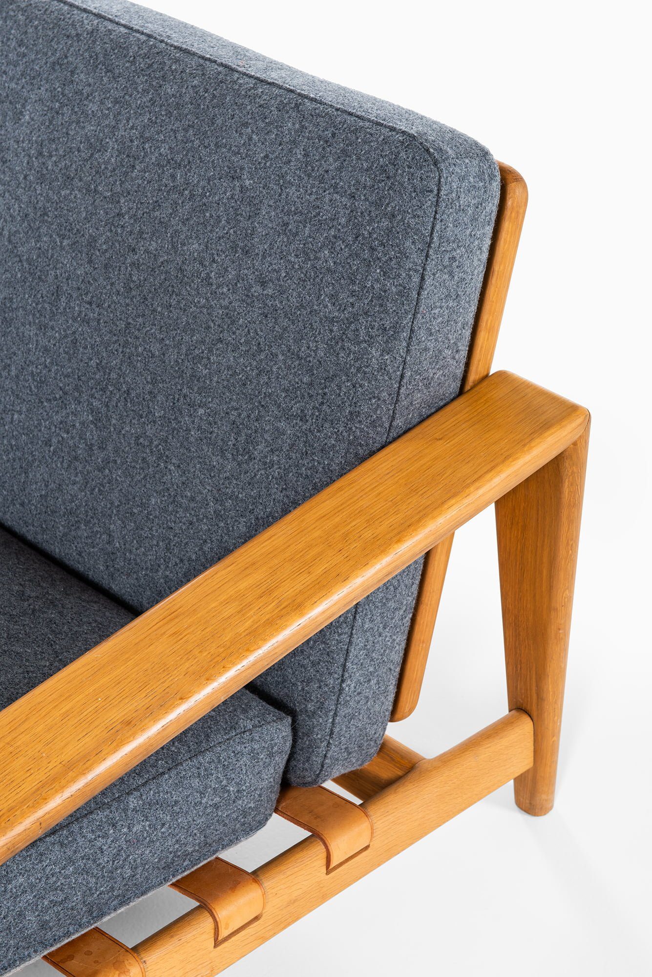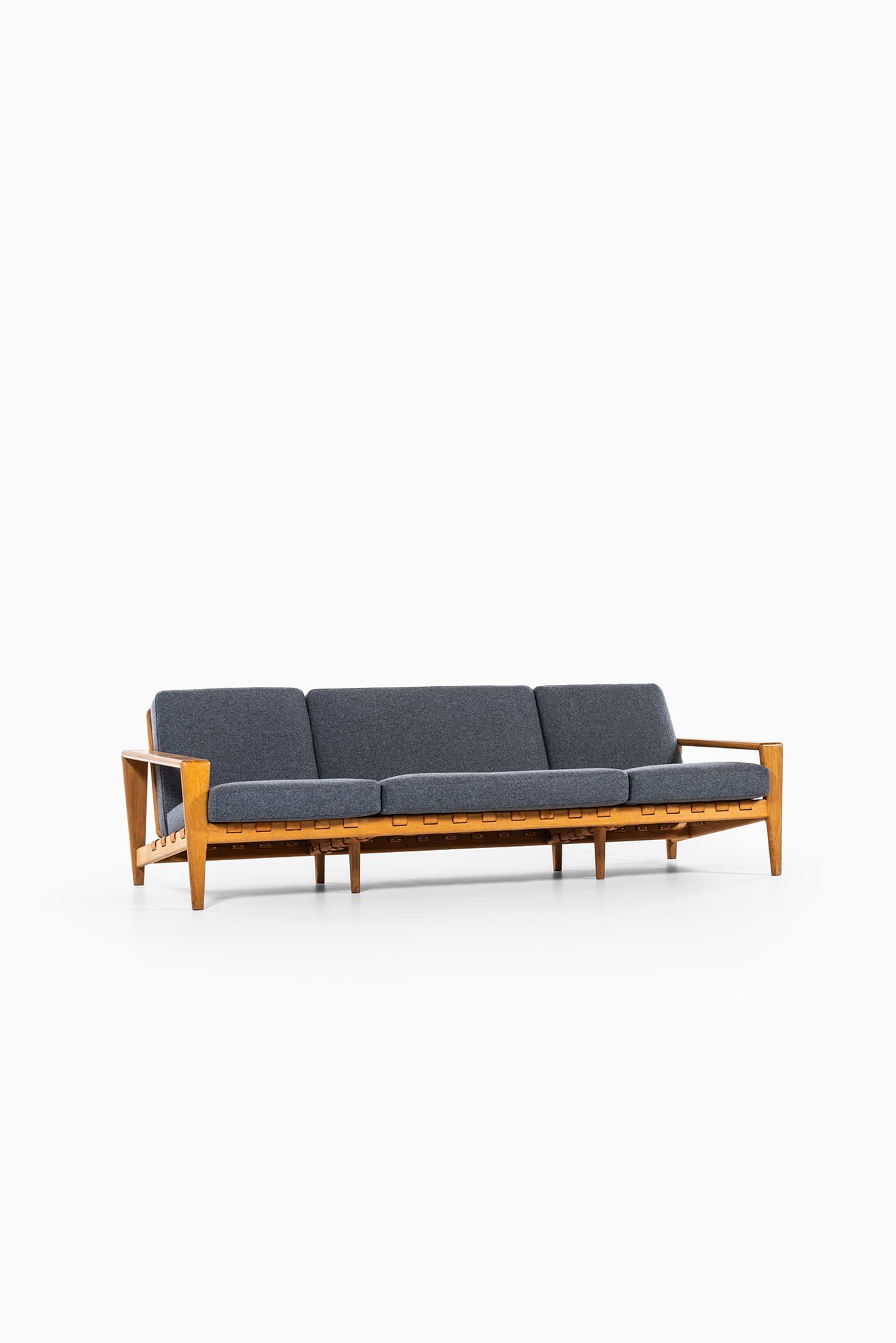 This rare sofa, model Bodö, was designed by Svante Skogh and produced by Seffle Möbelfabrik in Sweden during the 1950s. The design is a hallmark of Swedish mid-century craftsmanship, combining architectural precision with a warm, tactile material palette.