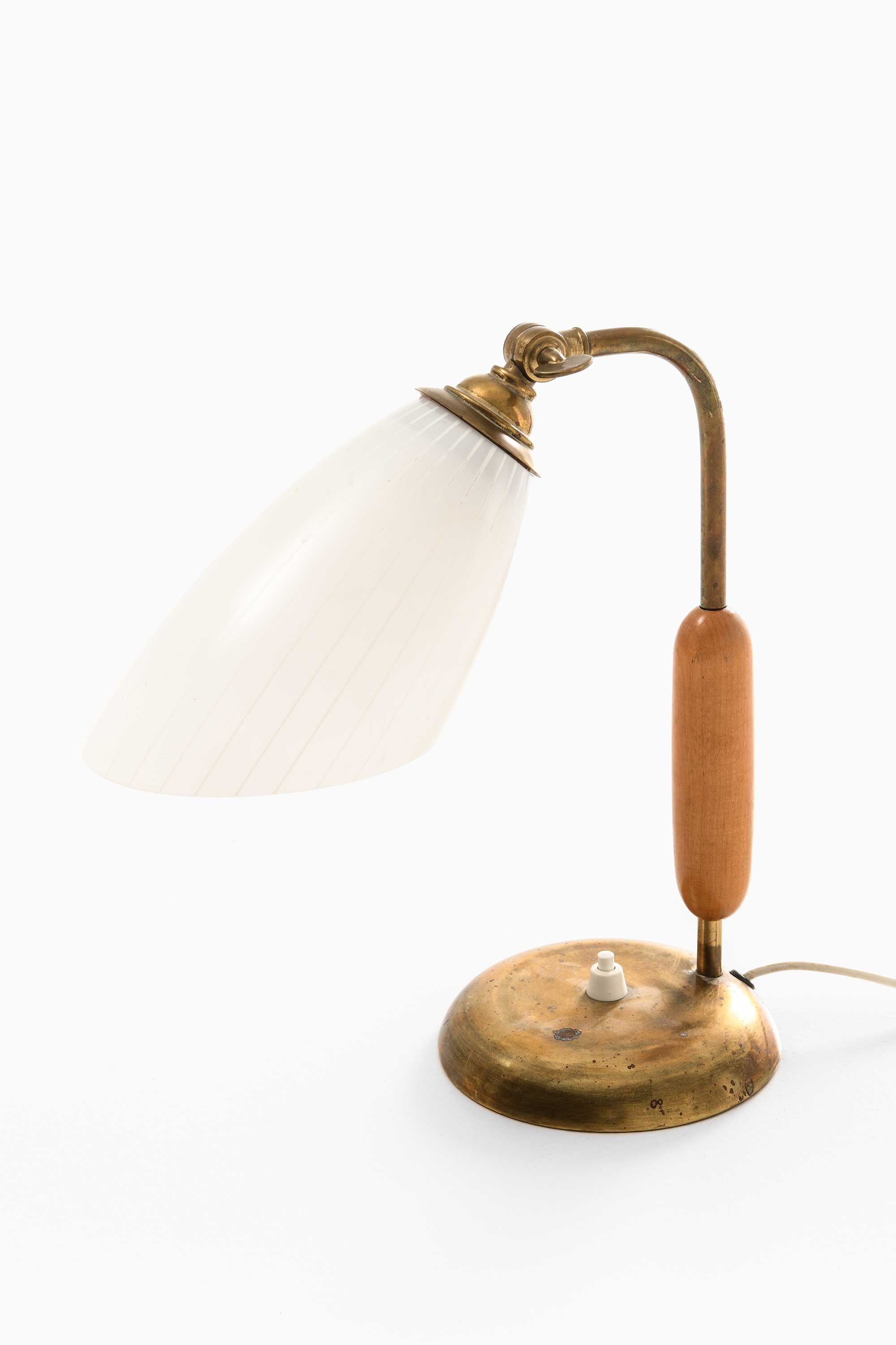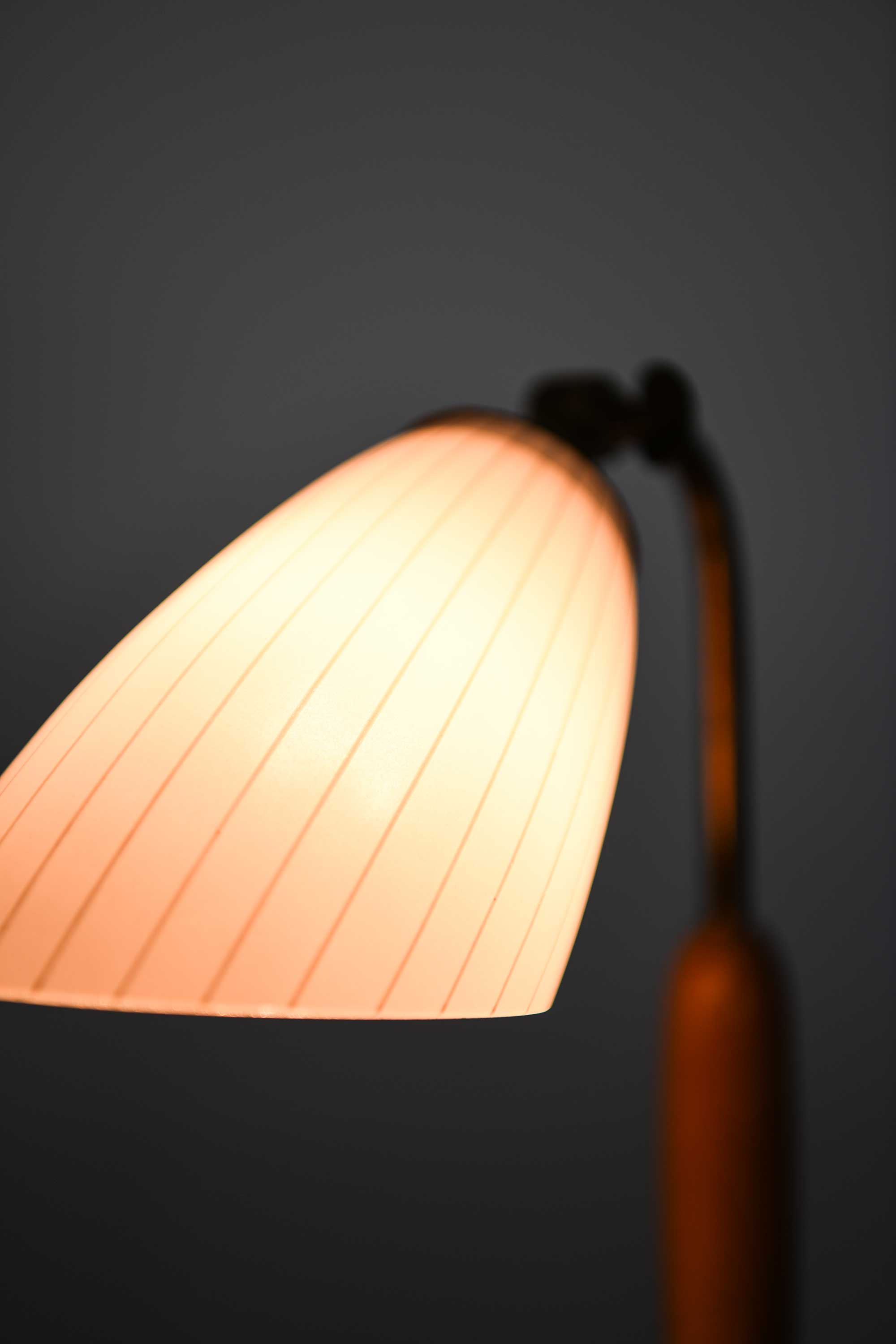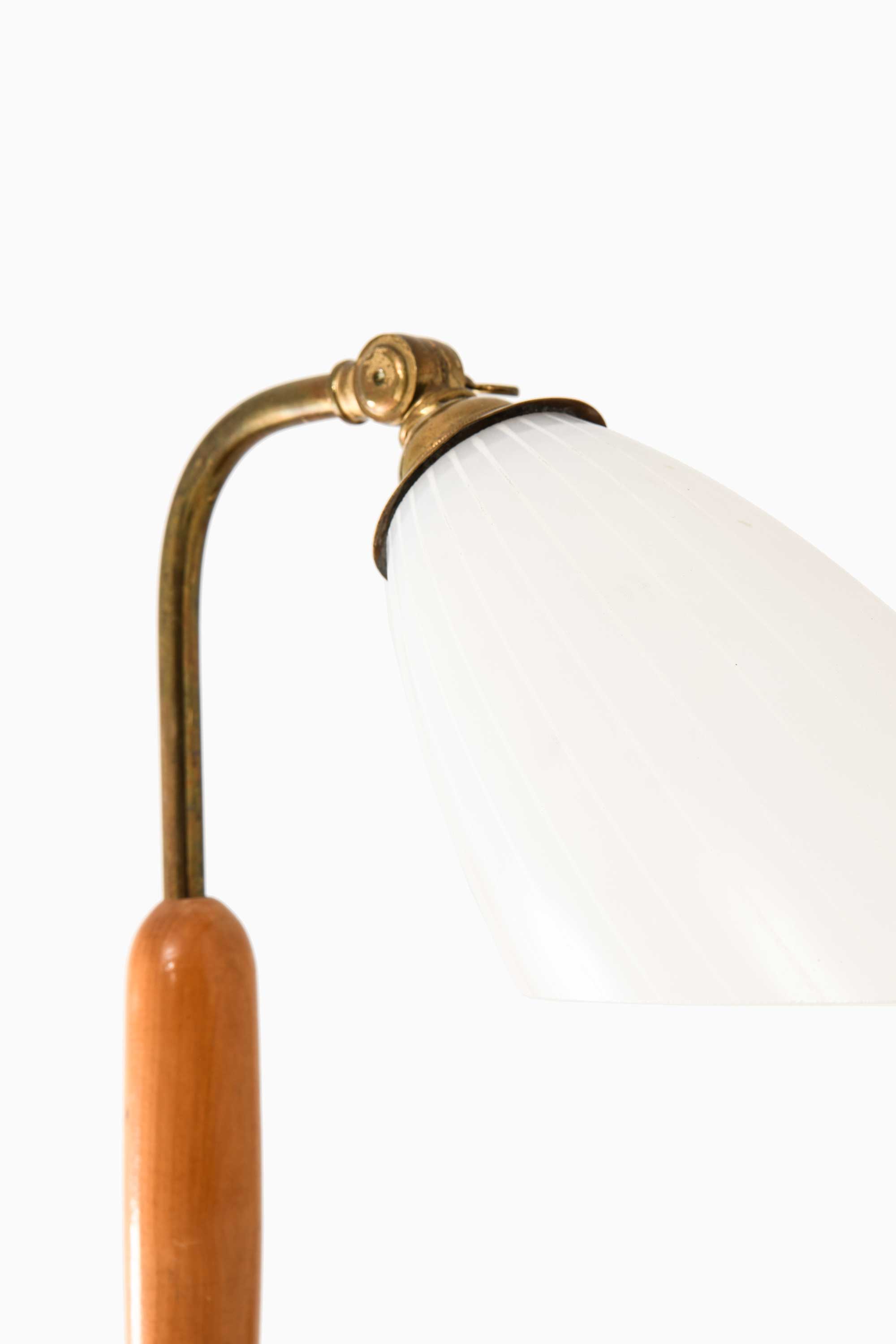 These lamps are characteristic of a transitional period in Scandinavian lighting design, where handcrafted elements such as wood turning and glasswork were beginning to merge with the streamlined metal forms that would come to define the mid-century aesthetic in the following decades.