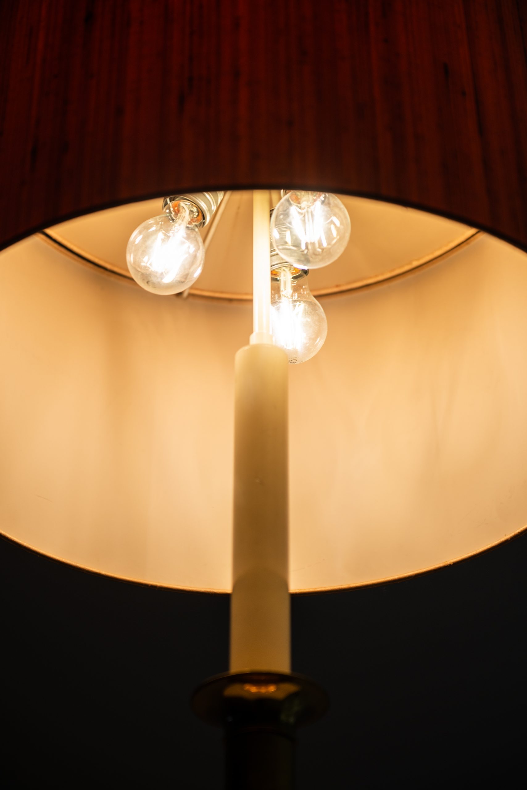 While the exact designer and manufacturer remain unidentified, the form and execution are closely aligned with mid-century German and Scandinavian lighting typologies, where functional clarity met decorative simplicity. These lamps were often produced in smaller series or bespoke runs, reflecting a post-war European design ethos of precision craftsmanship merged with restrained ornamentation.