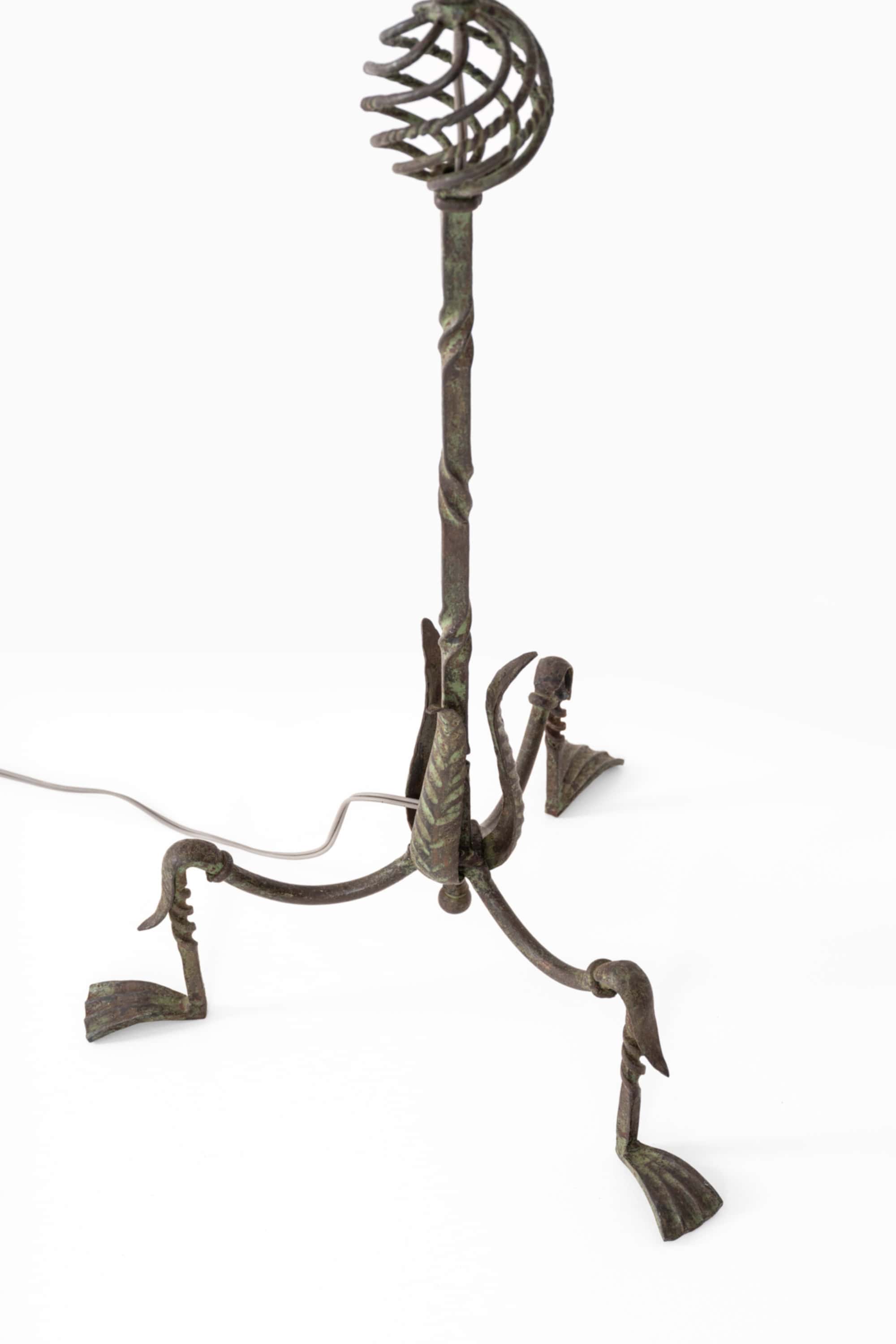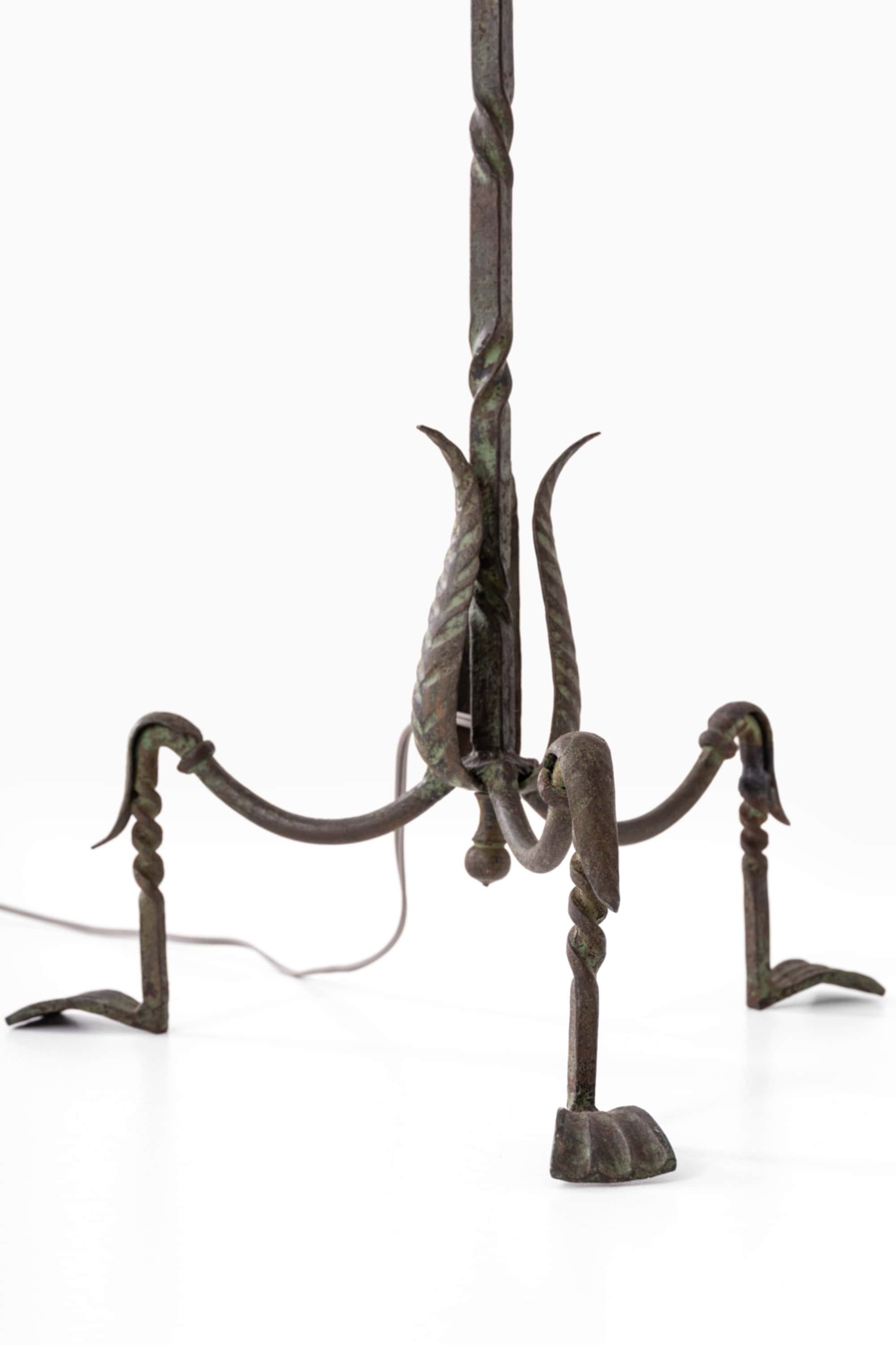 A very rare rustic floor lamp produced by Taidetakomo Hakkarainen in Finland during the 1930s. The piece represents an early example of Nordic artisanal ironwork, where traditional blacksmithing techniques are combined with an expressive, almost sculptural approach that anticipates later brutalist design.