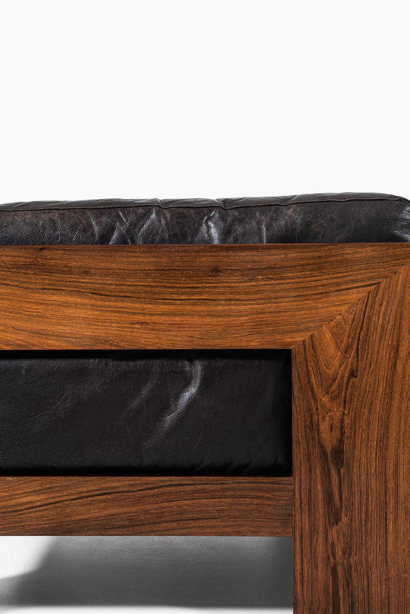 The pair remains in good vintage condition, with small signs of wear consistent with age and use. The rosewood retains its natural luster, and the leather has developed a desirable surface character. A matching three-seat sofa in the same design and material is also available.
