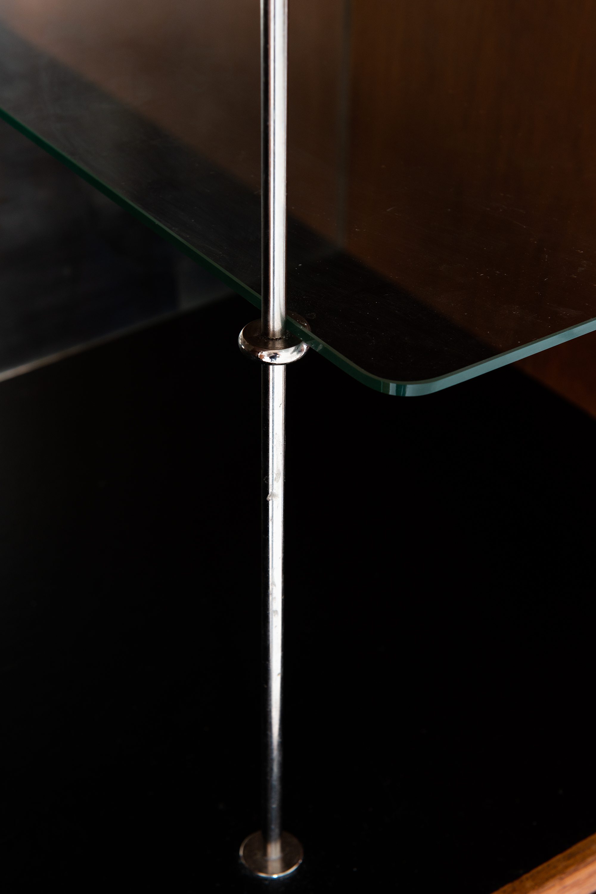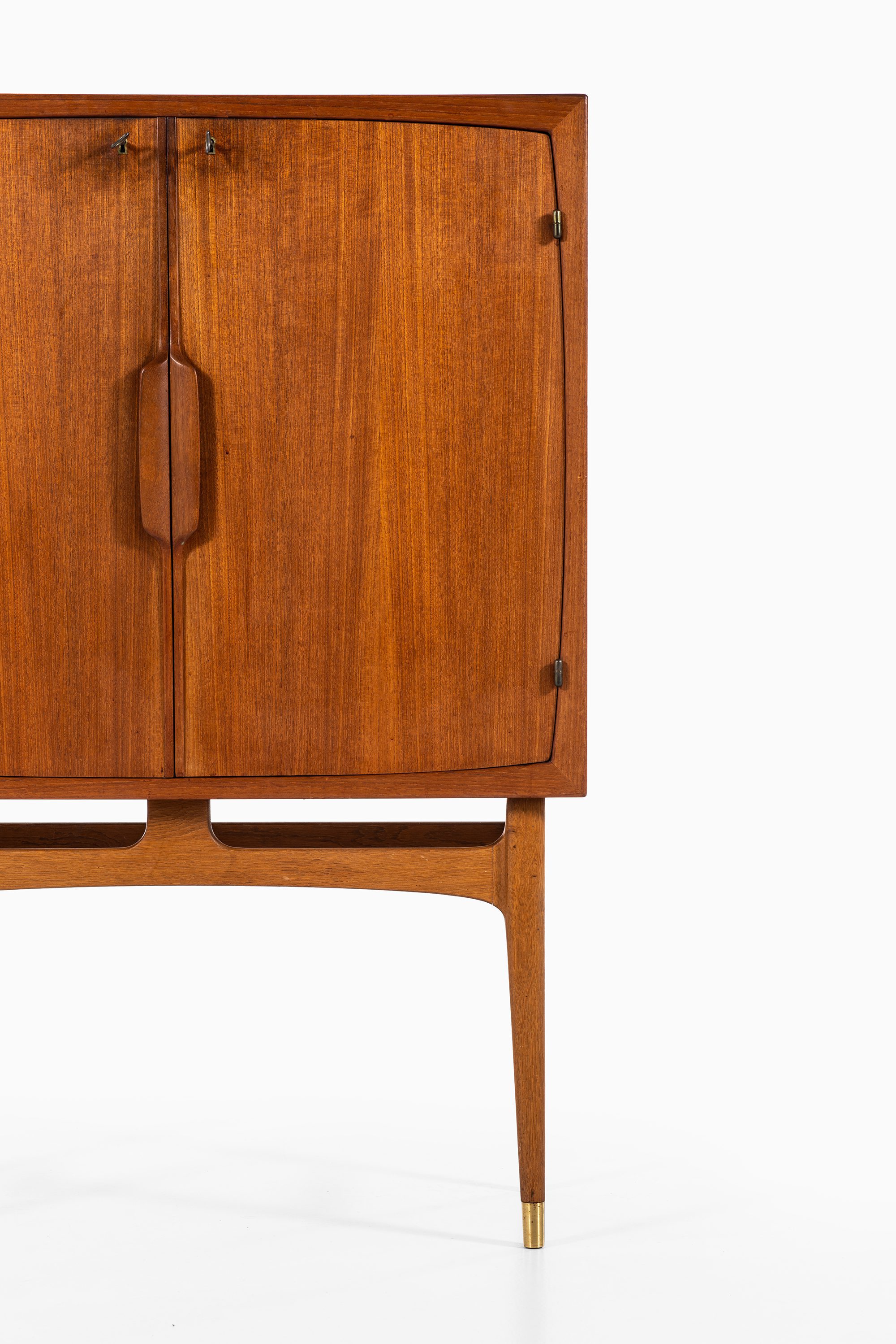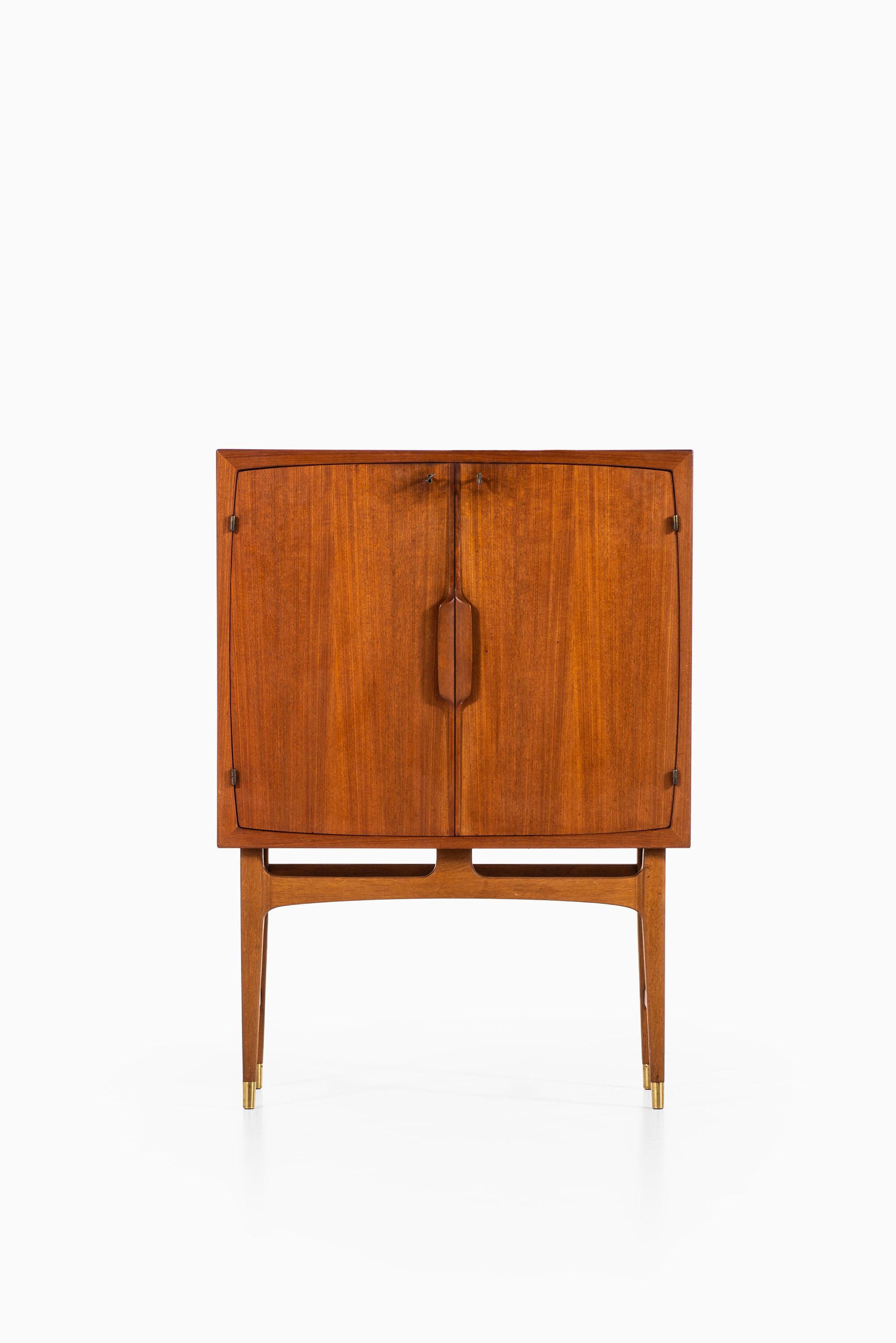 The bar cabinet is presented in good vintage condition, with signs of usage and a patina that corresponds to its age. The surfaces, brass fittings, and interior components remain well preserved, underlining the quality of both the design and the craftsmanship.