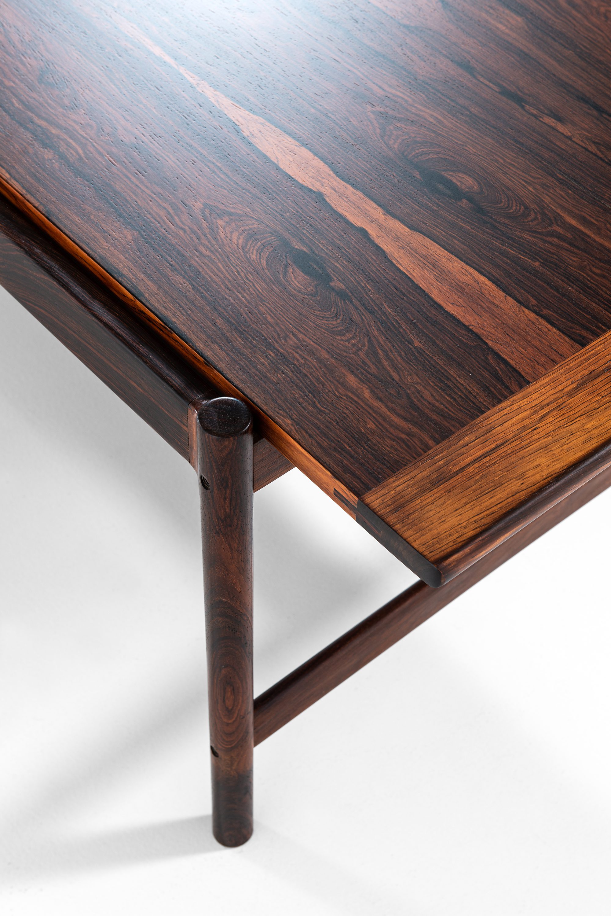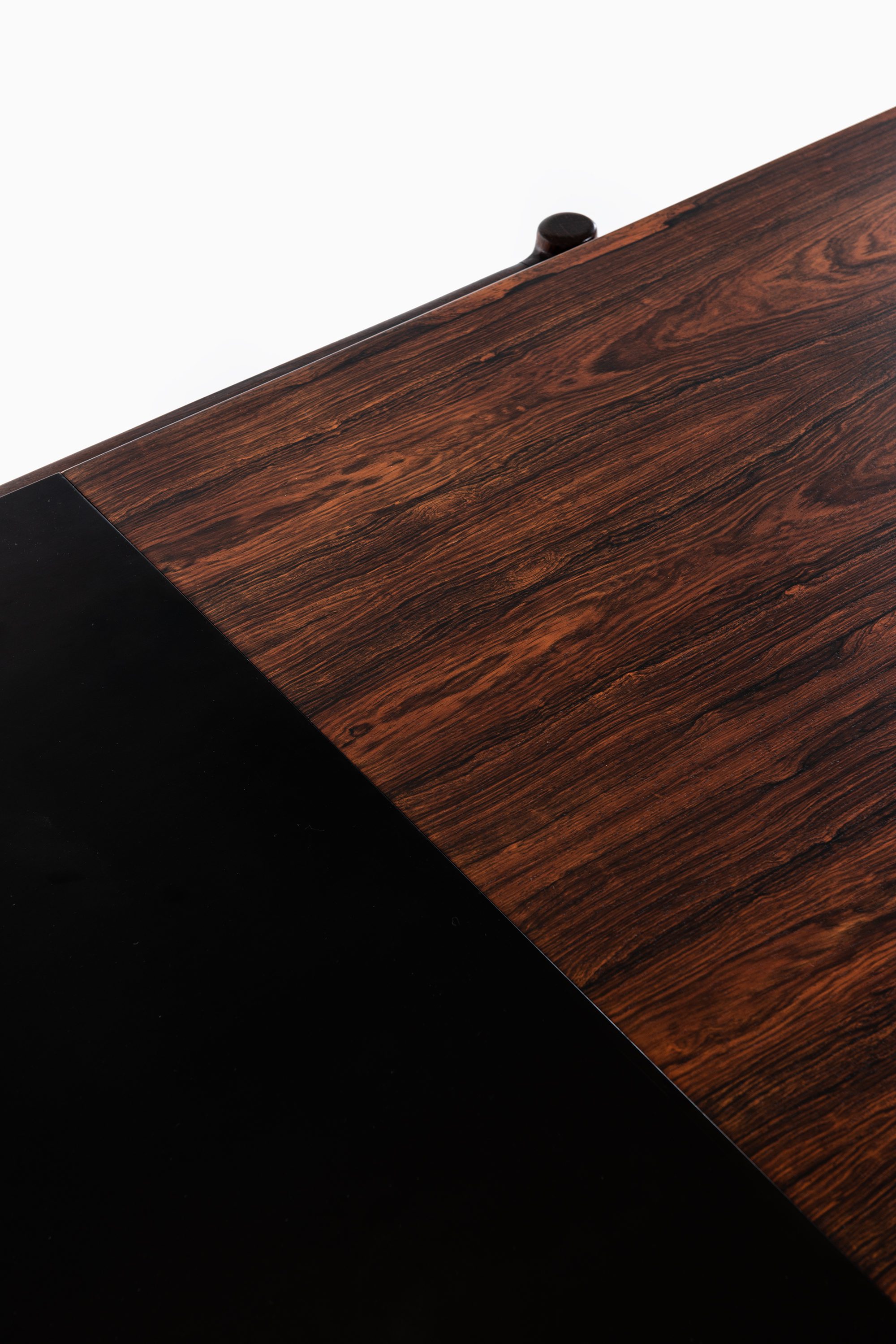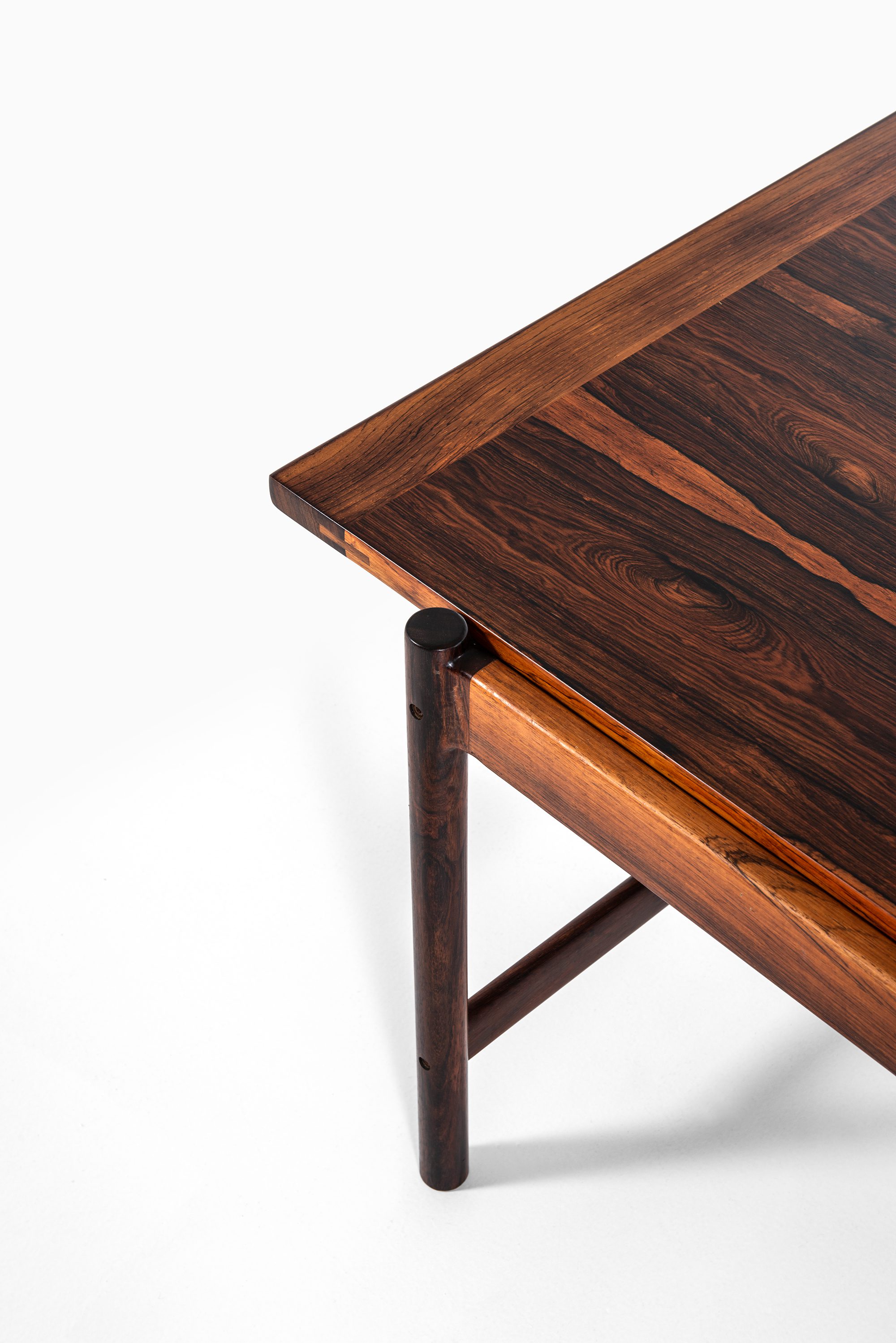 The table has been completely restored and remains in excellent vintage condition with only minor signs of use, allowing the rosewood to show its full depth of color and pattern. The restoration respects the original craftsmanship and design intent, preserving the integrity of the piece while ensuring durability for future use.