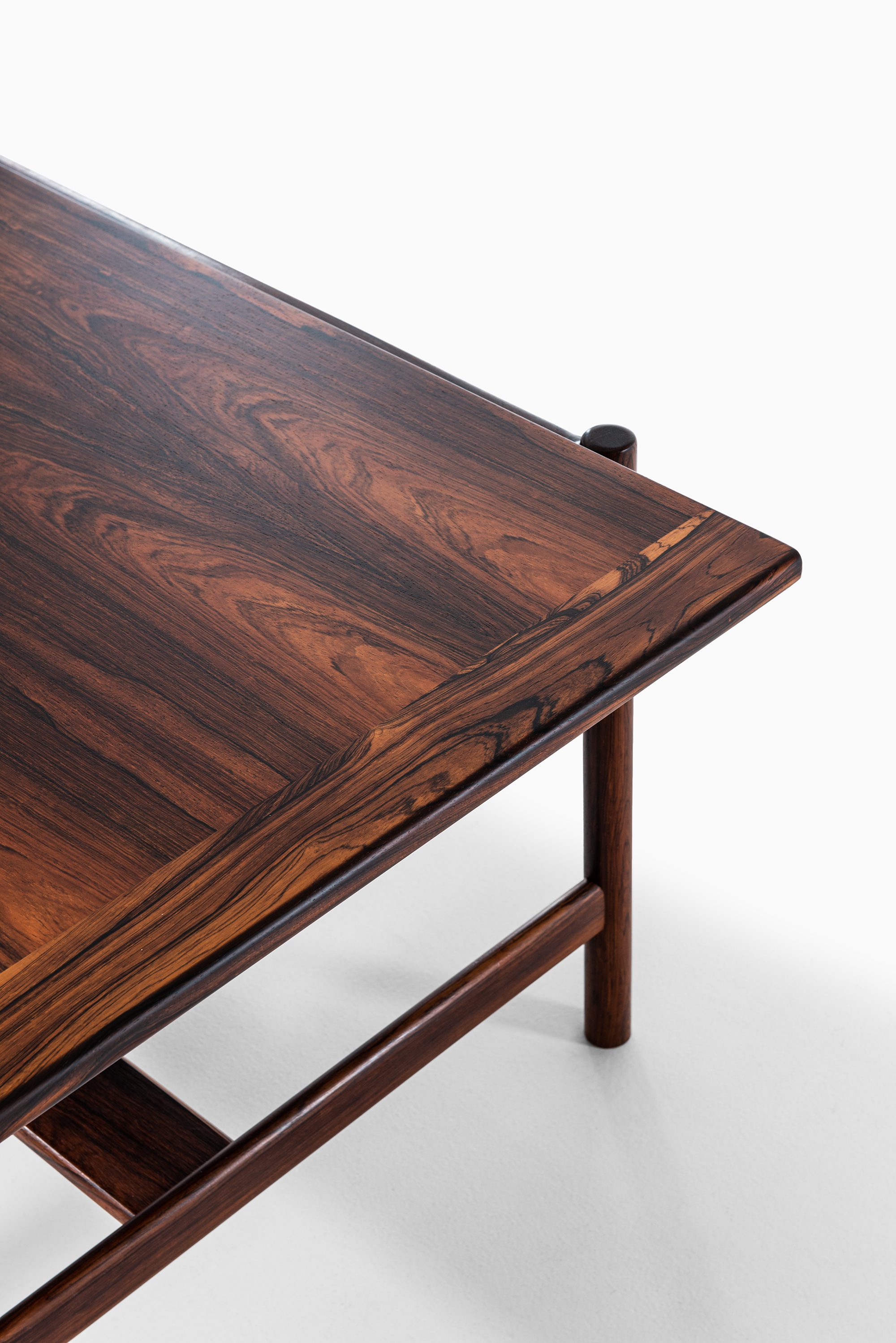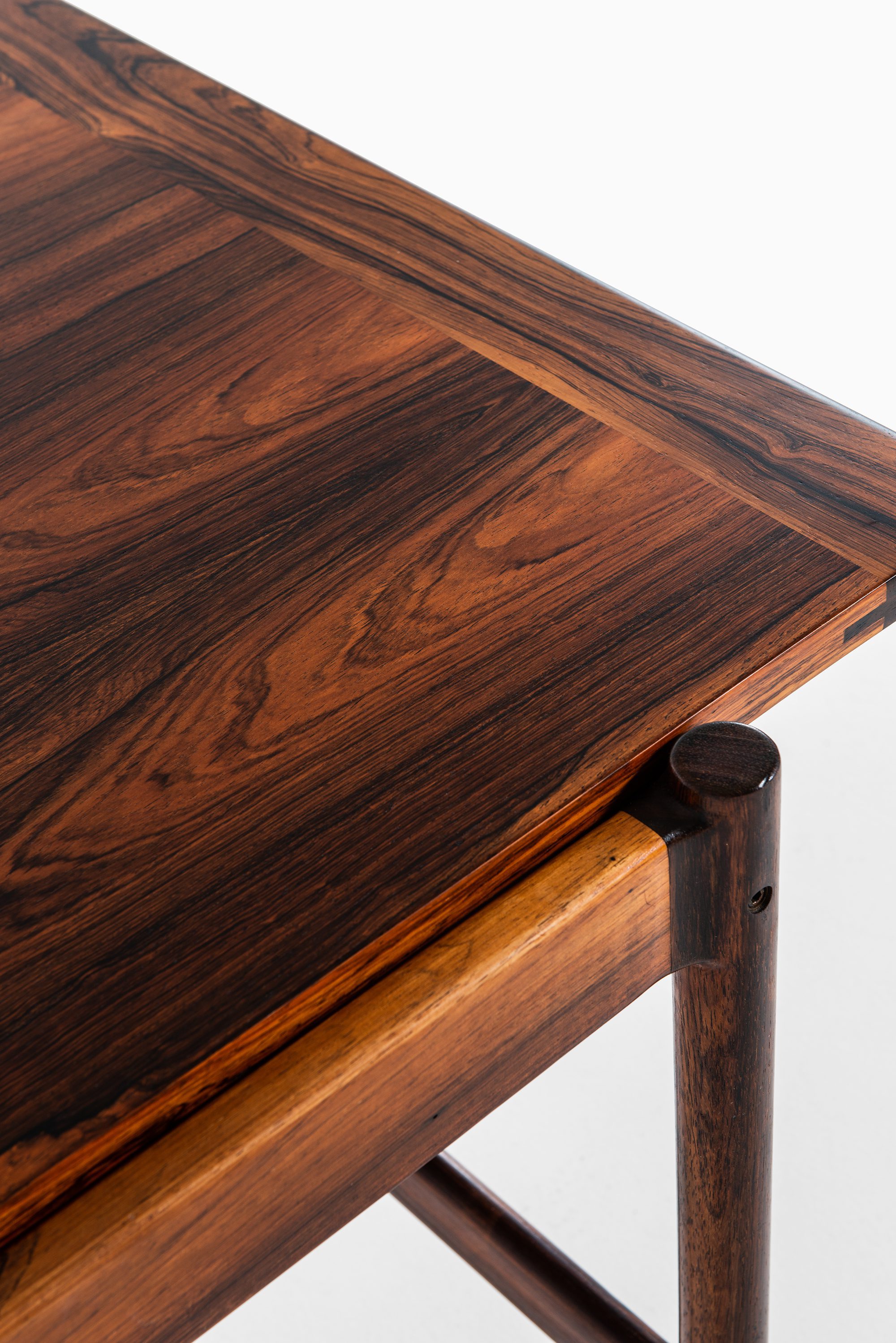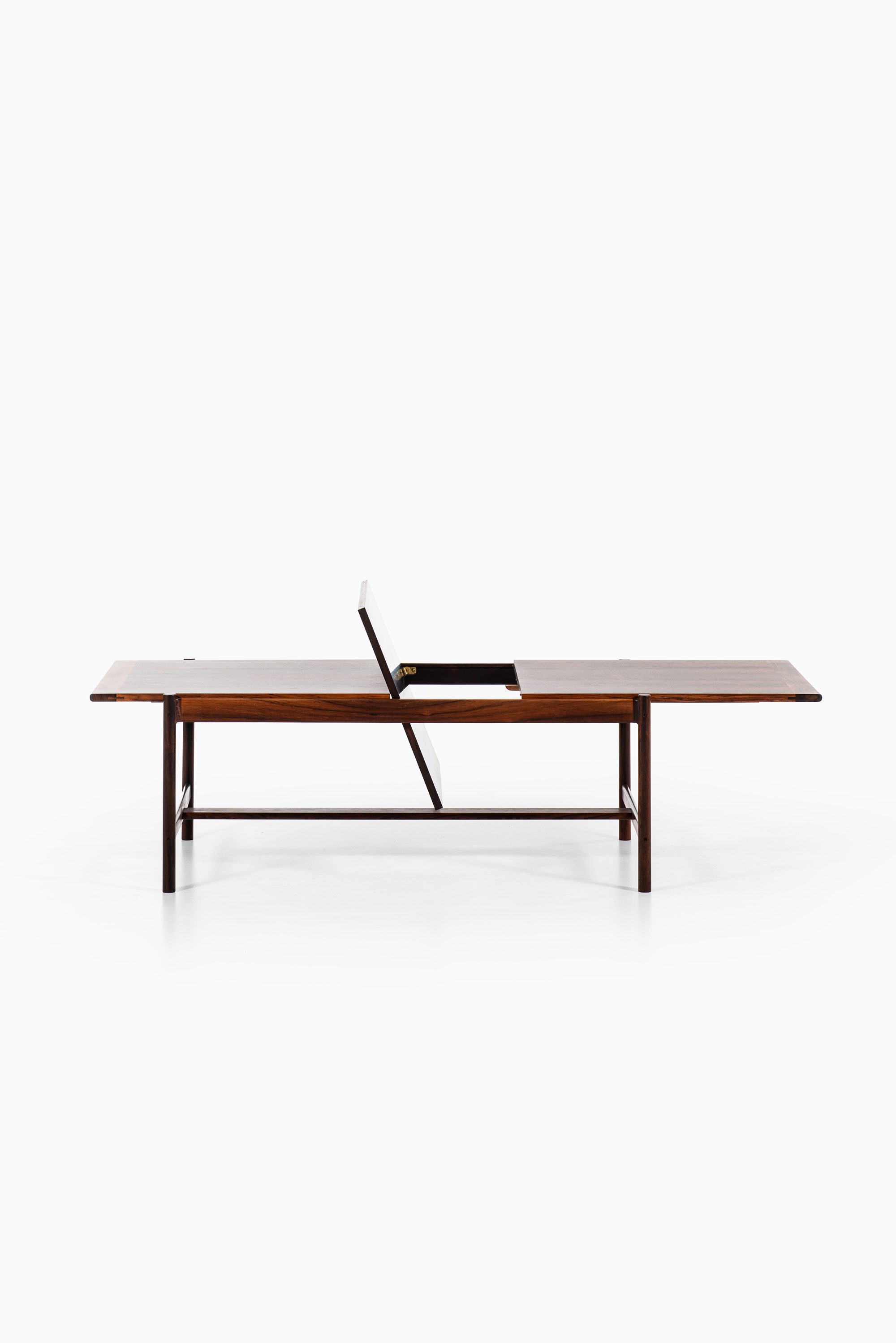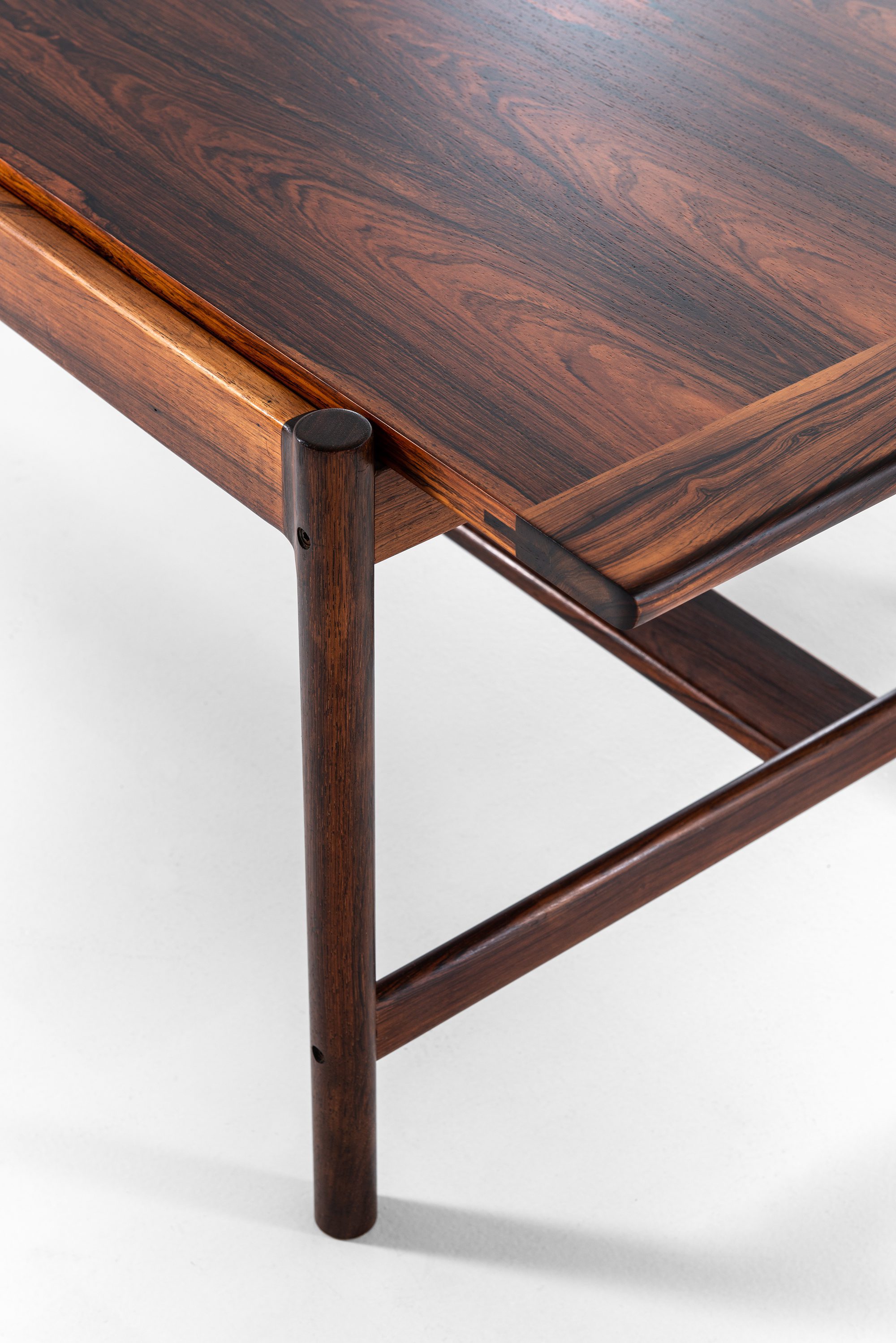 The table has been completely restored and remains in excellent vintage condition with only minor signs of use, allowing the rosewood to show its full depth of color and pattern. The restoration respects the original craftsmanship and design intent, preserving the integrity of the piece while ensuring durability for future use.