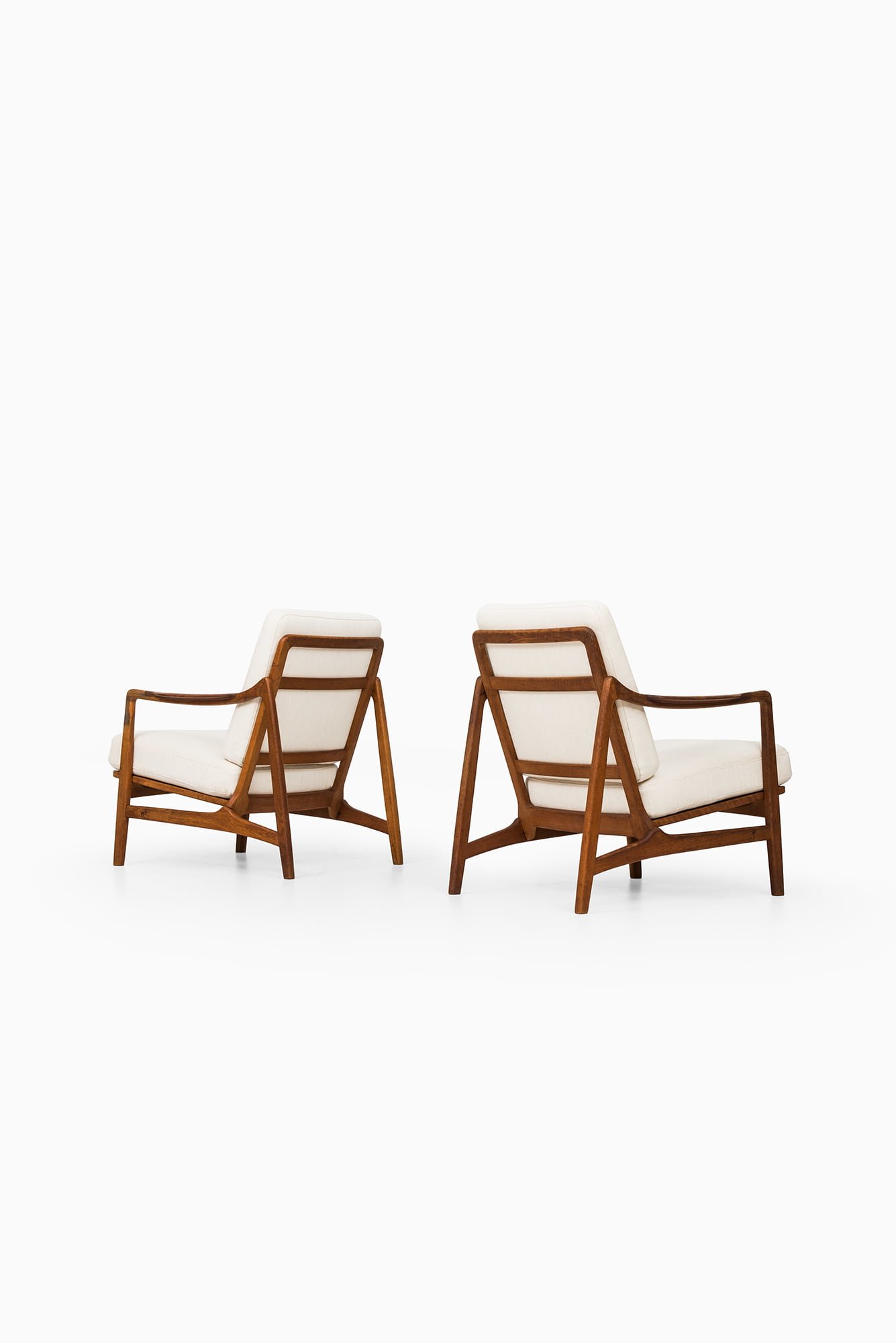 This rare pair of easy chairs, model 117, was designed by the Danish husband-and-wife team Tove and Edvard Kindt-Larsen during the 1950s. Produced by France & Daverkosen in Denmark, the chairs exemplify the refined craftsmanship and balanced proportions that defined Scandinavian mid-century modern furniture. France & Daverkosen, later renamed France & Søn, was among the most important Danish manufacturers of the postwar period, known for their collaborations with leading designers and their focus on quality materials and timeless forms.