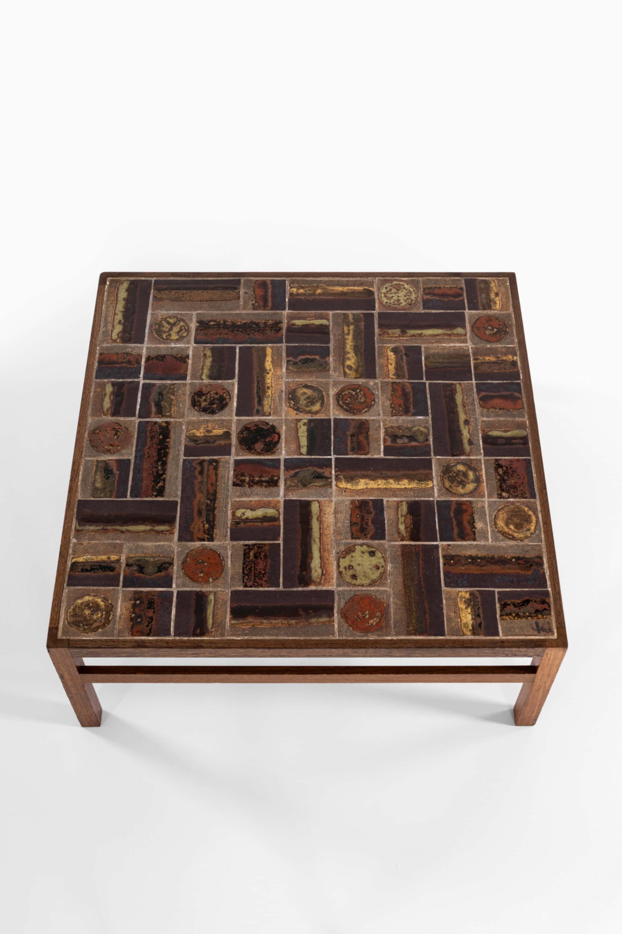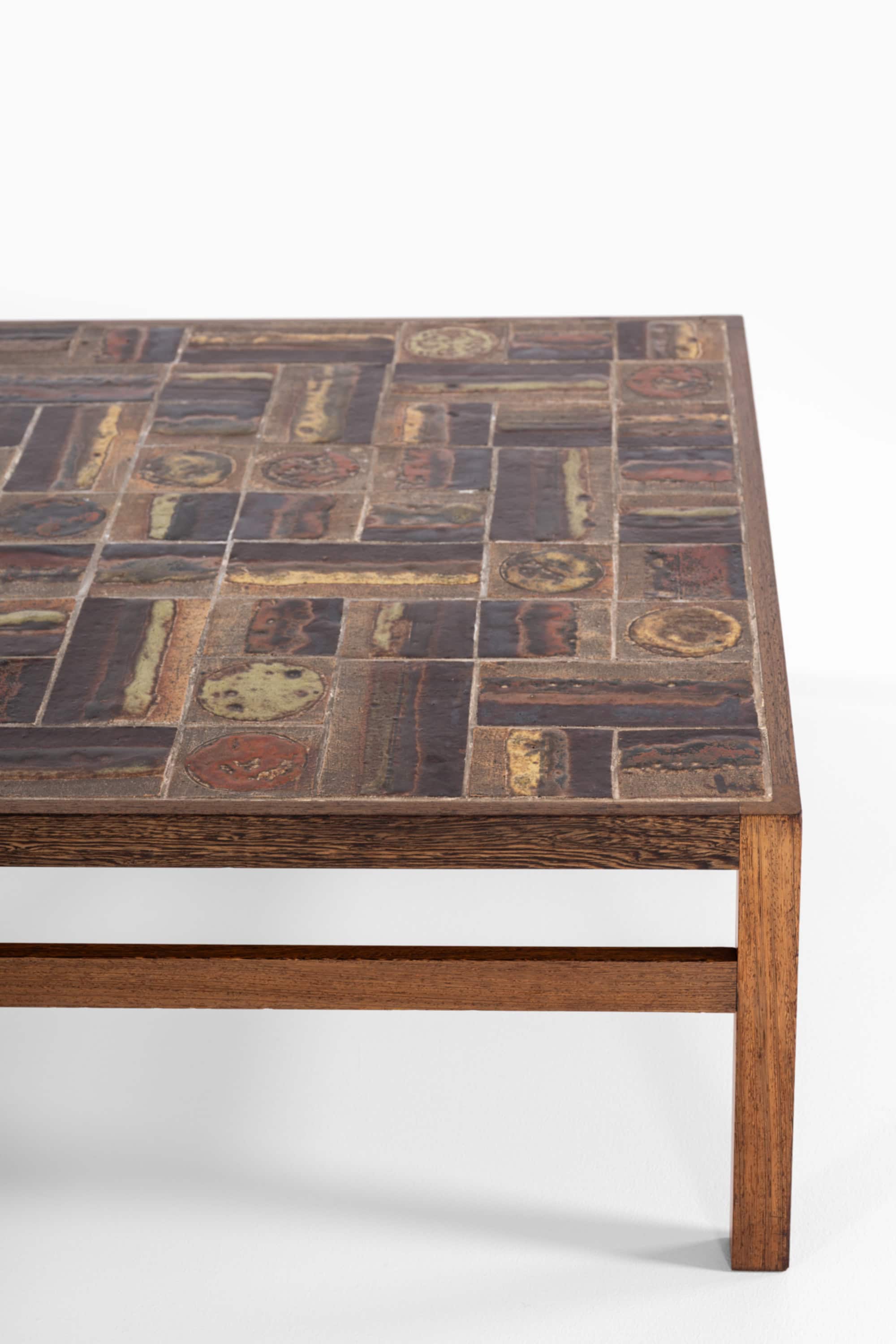 A rare coffee table designed by Tue Poulsen and Erik Wørts and produced by Willy Beck in Denmark during the 1960s. The piece represents a refined collaboration between ceramic artistry and cabinetmaking, characteristic of Danish modern design from the period.