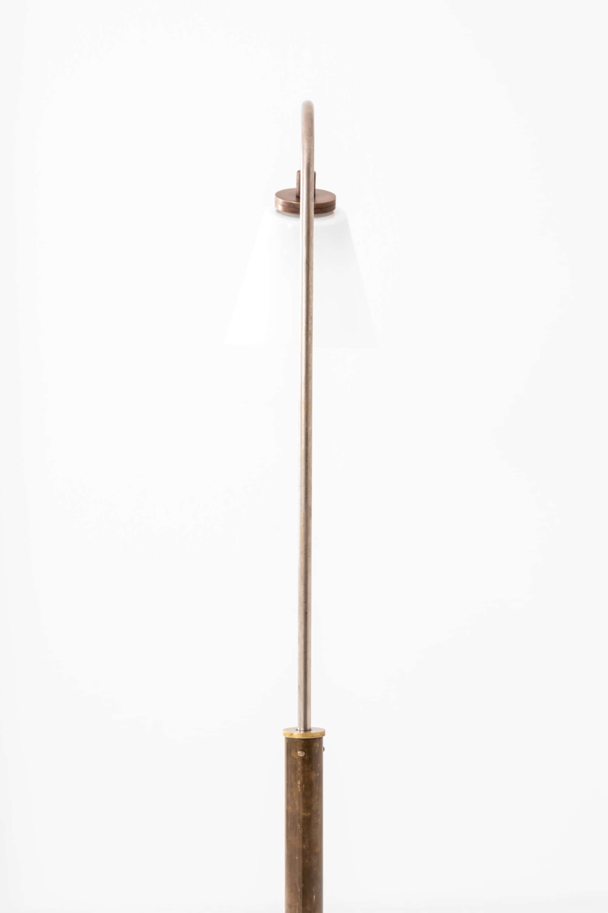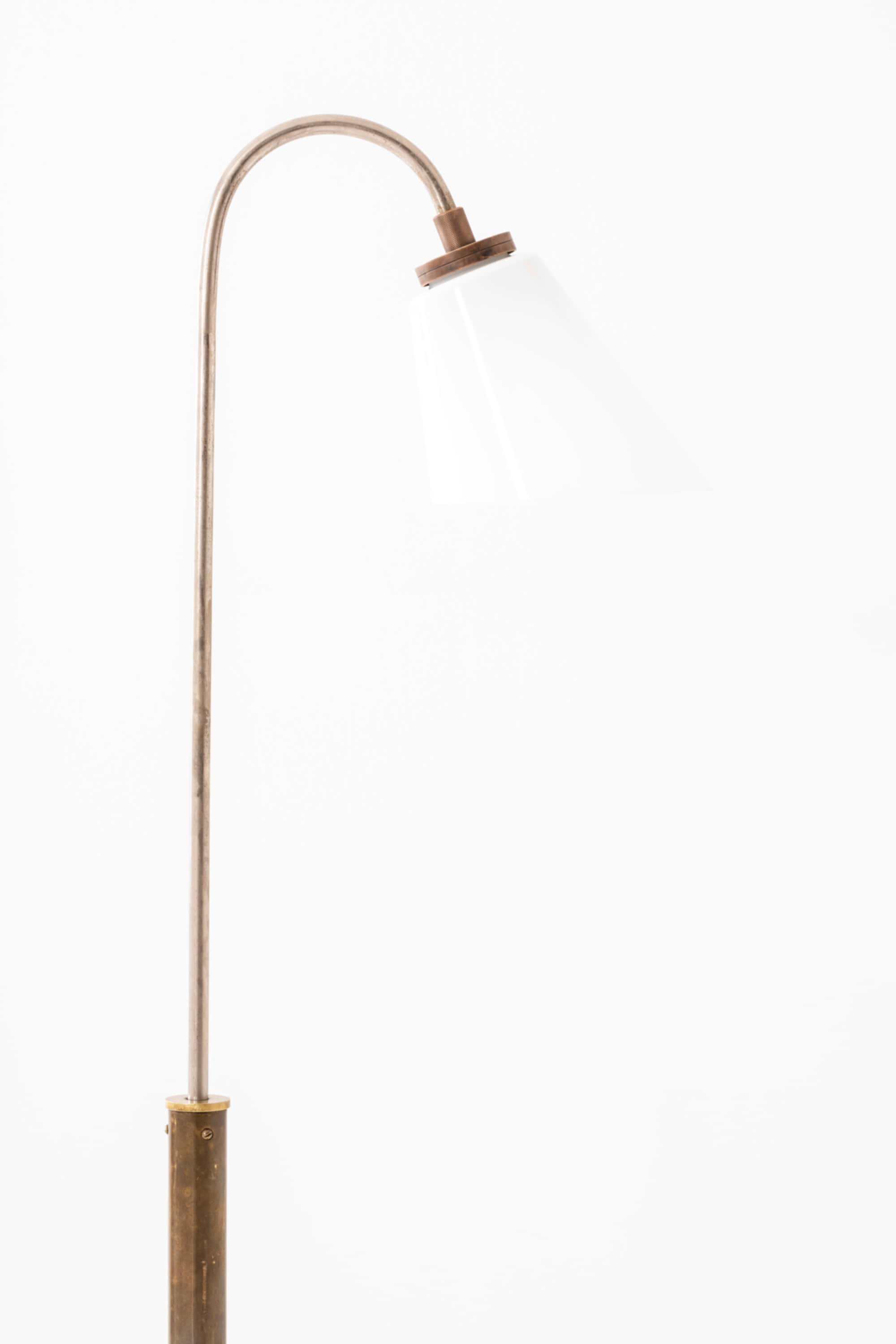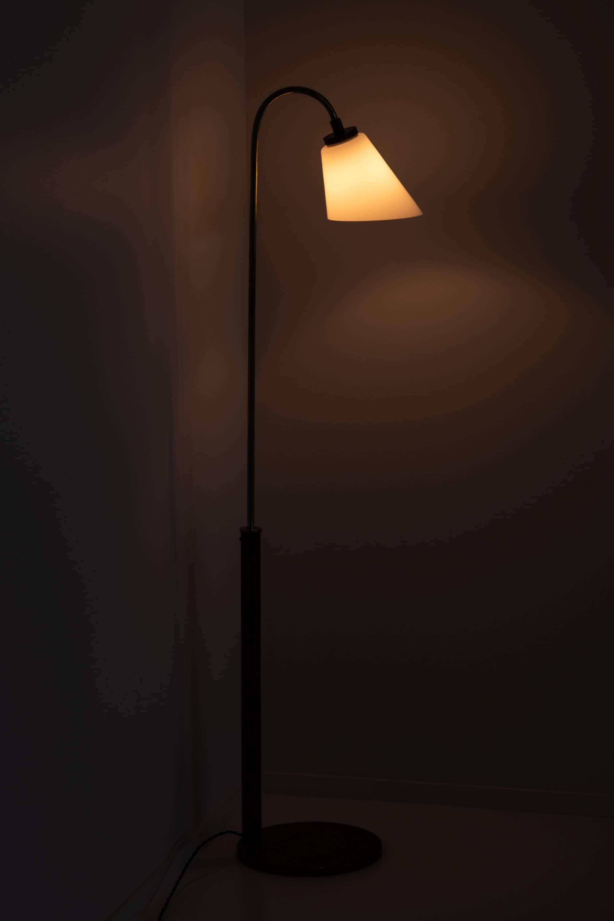 A very rare height-adjustable floor lamp designed in 1928 by Vilhelm Lauritzen and Frits Schlegel, produced by Fritzsches Glashandel in Denmark. The design exemplifies early Danish functionalism, where architectural clarity and material honesty are combined in a refined and highly purposeful form.