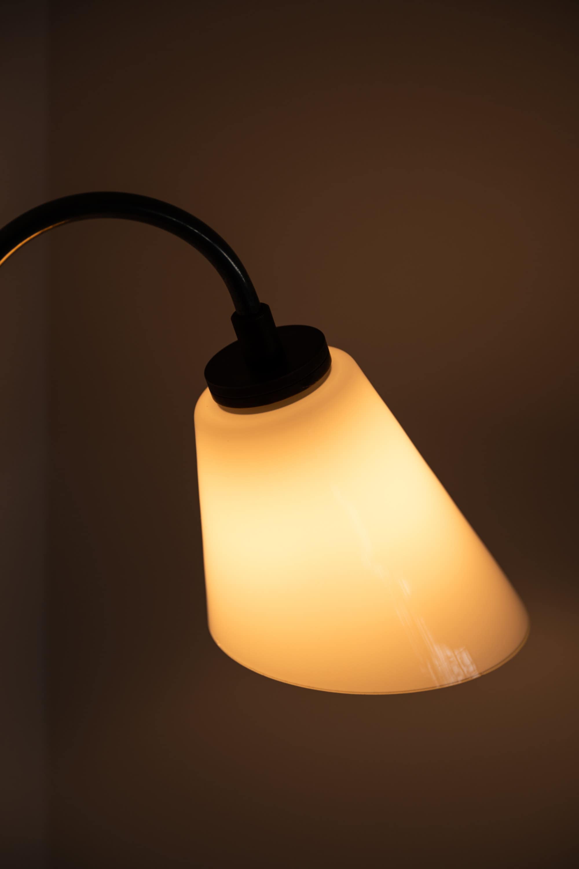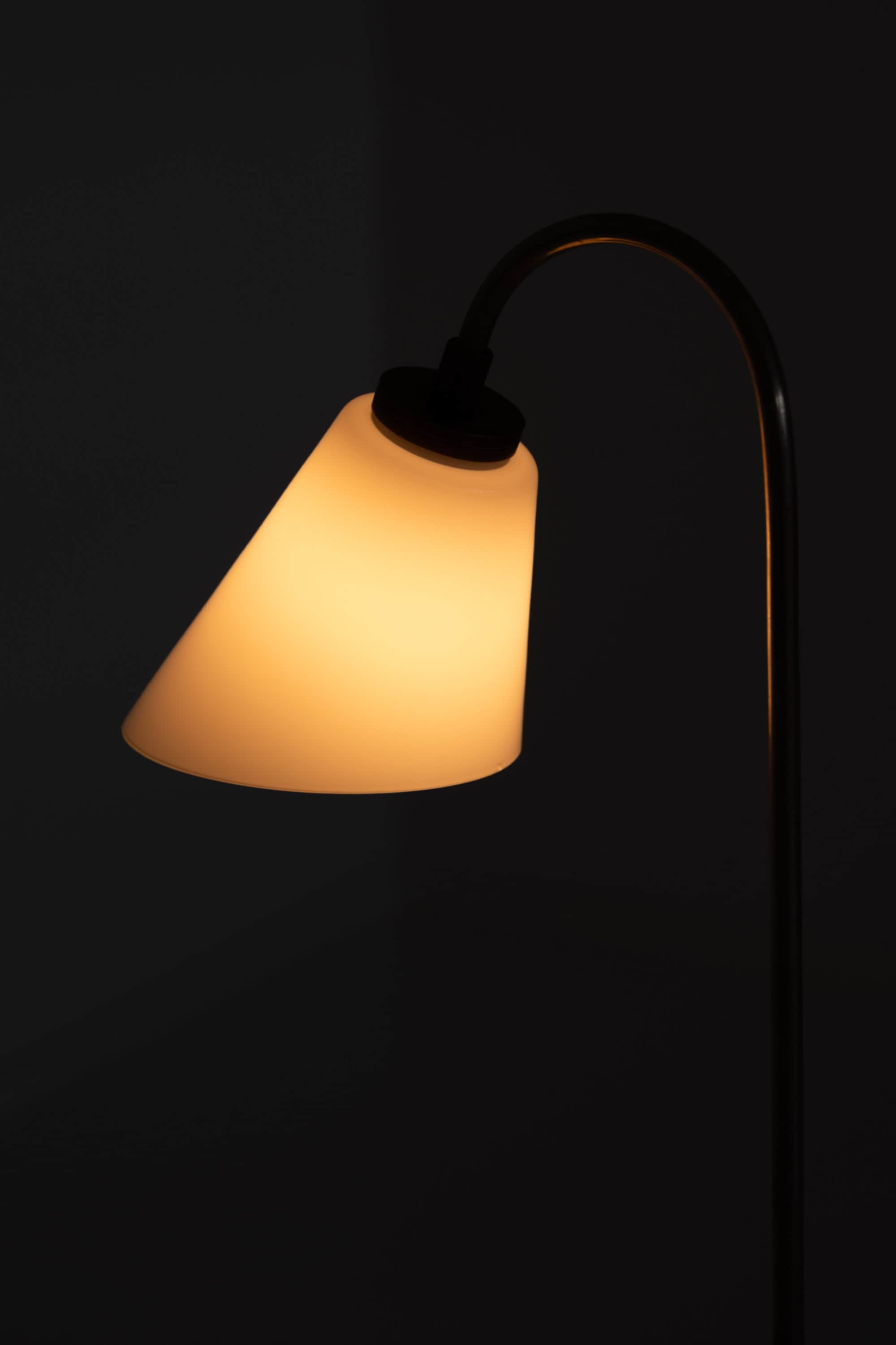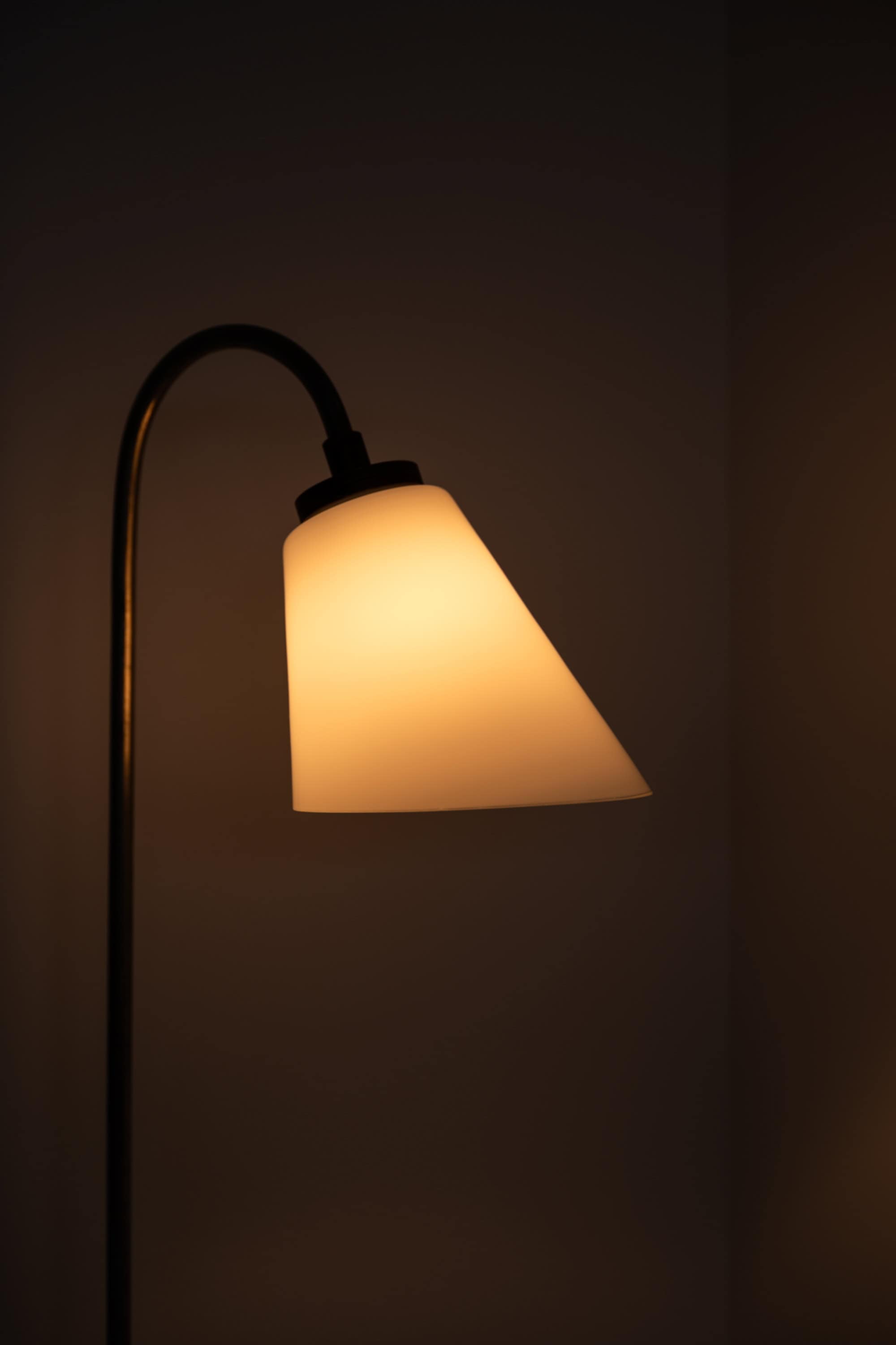 A very rare height-adjustable floor lamp designed in 1928 by Vilhelm Lauritzen and Frits Schlegel, produced by Fritzsches Glashandel in Denmark. The design exemplifies early Danish functionalism, where architectural clarity and material honesty are combined in a refined and highly purposeful form.