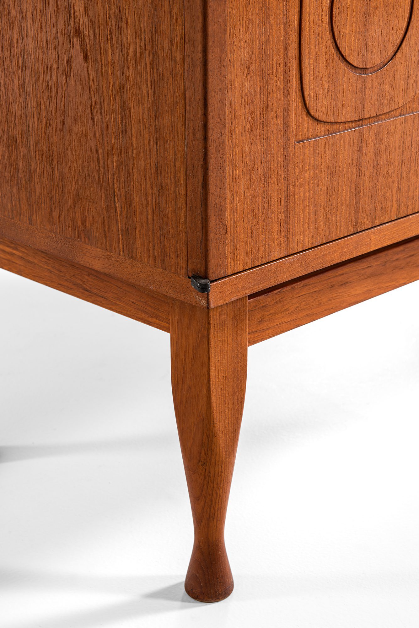 Stylistically, the cabinet belongs to the Scandinavian mid-century period, where natural materials, functional clarity, and artistic restraint were central values. The Krus model stands out within this context due to its graphic door carvings, which introduce a more expressive, almost symbolic layer to an otherwise rational and balanced cabinet form.
